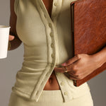 A versatile staple with a feminine edge. The Form-Ribbed Button-Down Tank Top is designed with a clean front button closure and a fitted silhouette that flatters every natural curve. Versatile by design and refined in detail, it’s the piece you’ll reach for on repeat this season.
