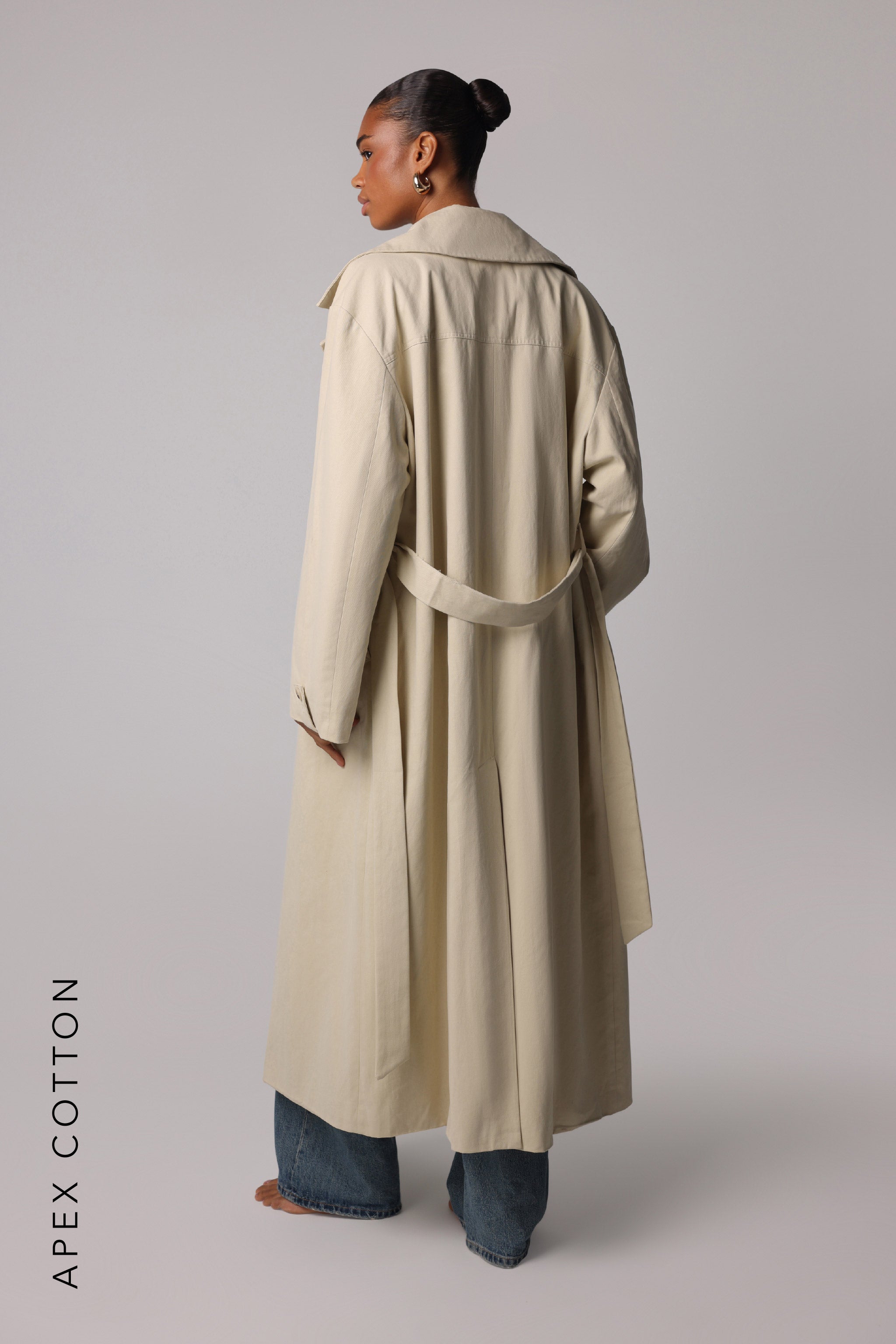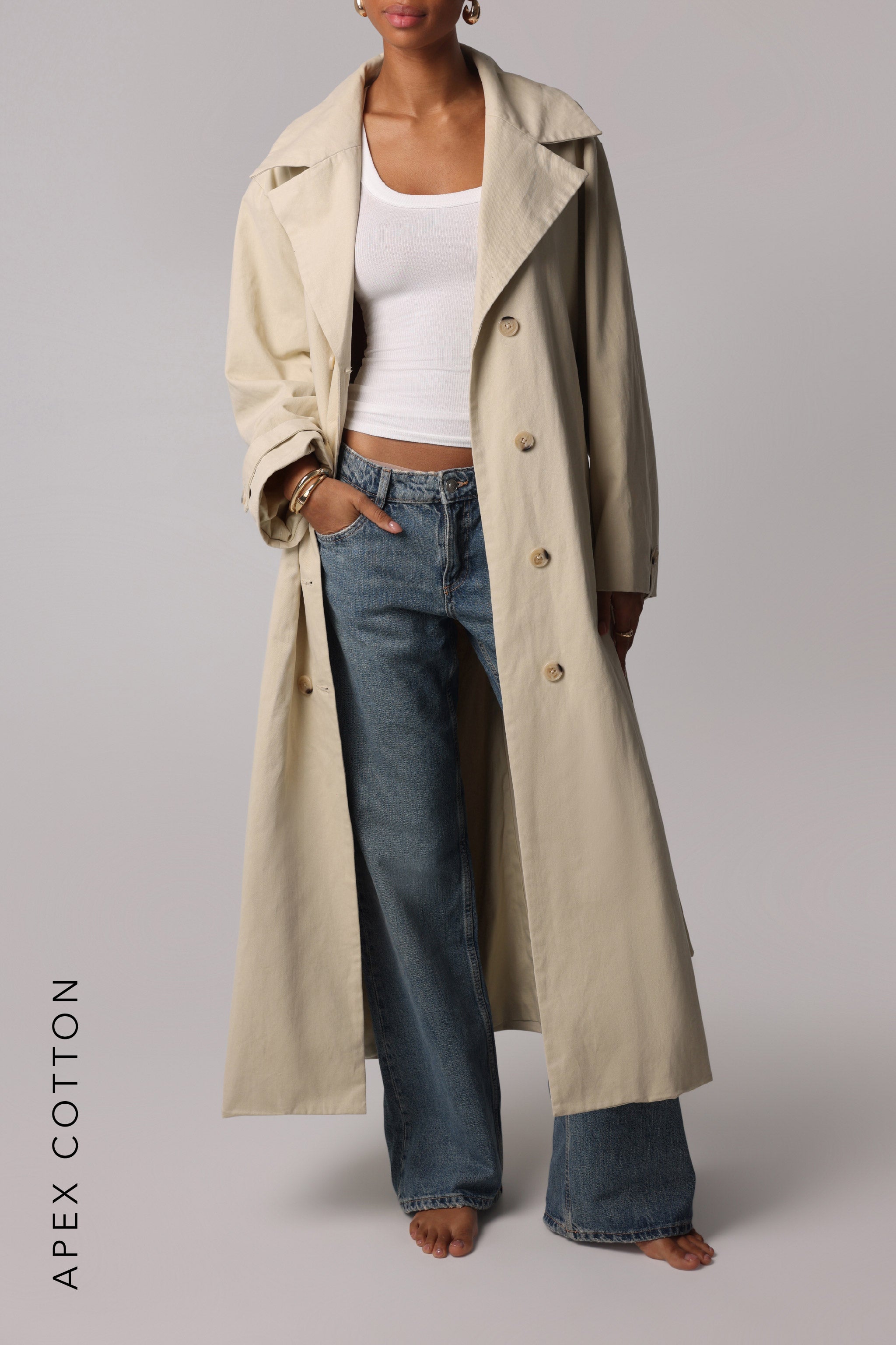 An outerwear classic, redefined. The Origin Longline Trench Coat features a clean, elongated silhouette with subtle structure and fluid movement. Designed with a relaxed fit and thoughtful tailoring, it layers effortlessly over any look – adding quiet sophistication to your everyday wardrobe. Finished with minimal detailing and a soft hand-feel, it's the kind of piece you'll return to season after season.