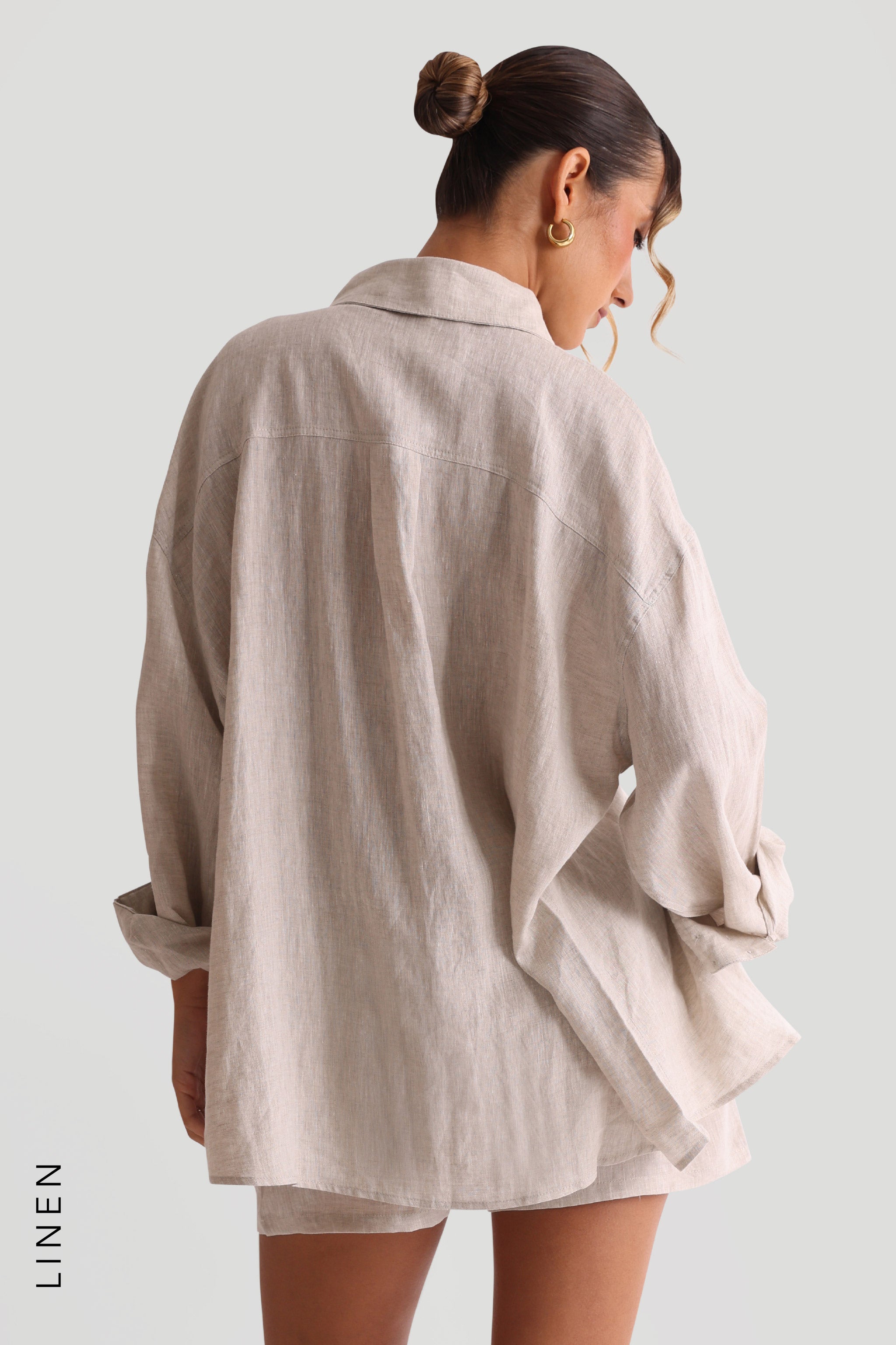 The Oversized Linen Button-Down Top blends relaxed tailoring with the breathable ease of linen. Featuring a crisp button-up front and an intentionally oversized fit, it offers a modern, laid-back silhouette that still feels polished. Pair it with our Ivy Linen Shorts for a coordinated look that transitions effortlessly from casual mornings to elevated evenings.