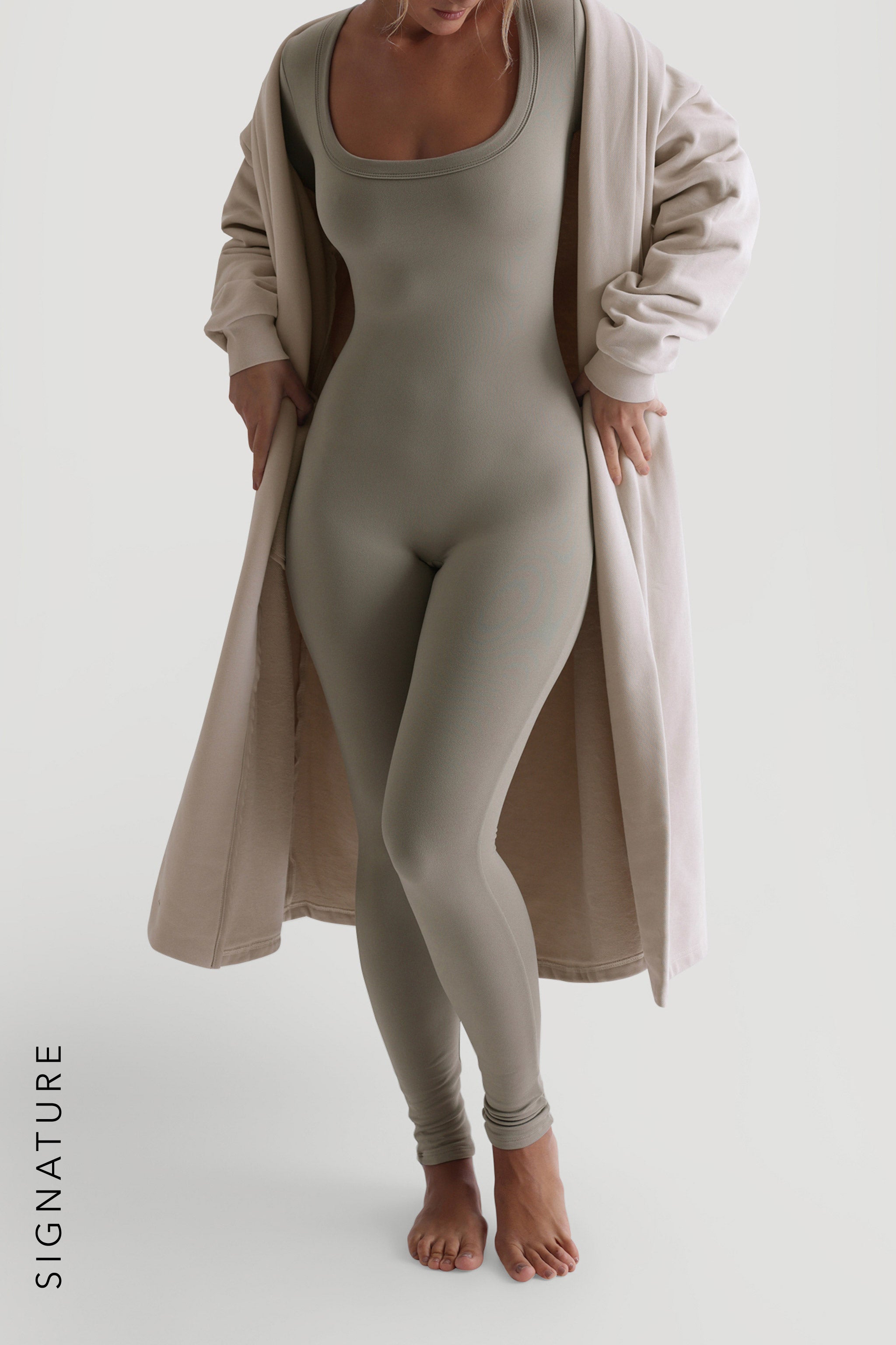 U-Shape Long Sleeve Jumpsuit - Quiet Sage