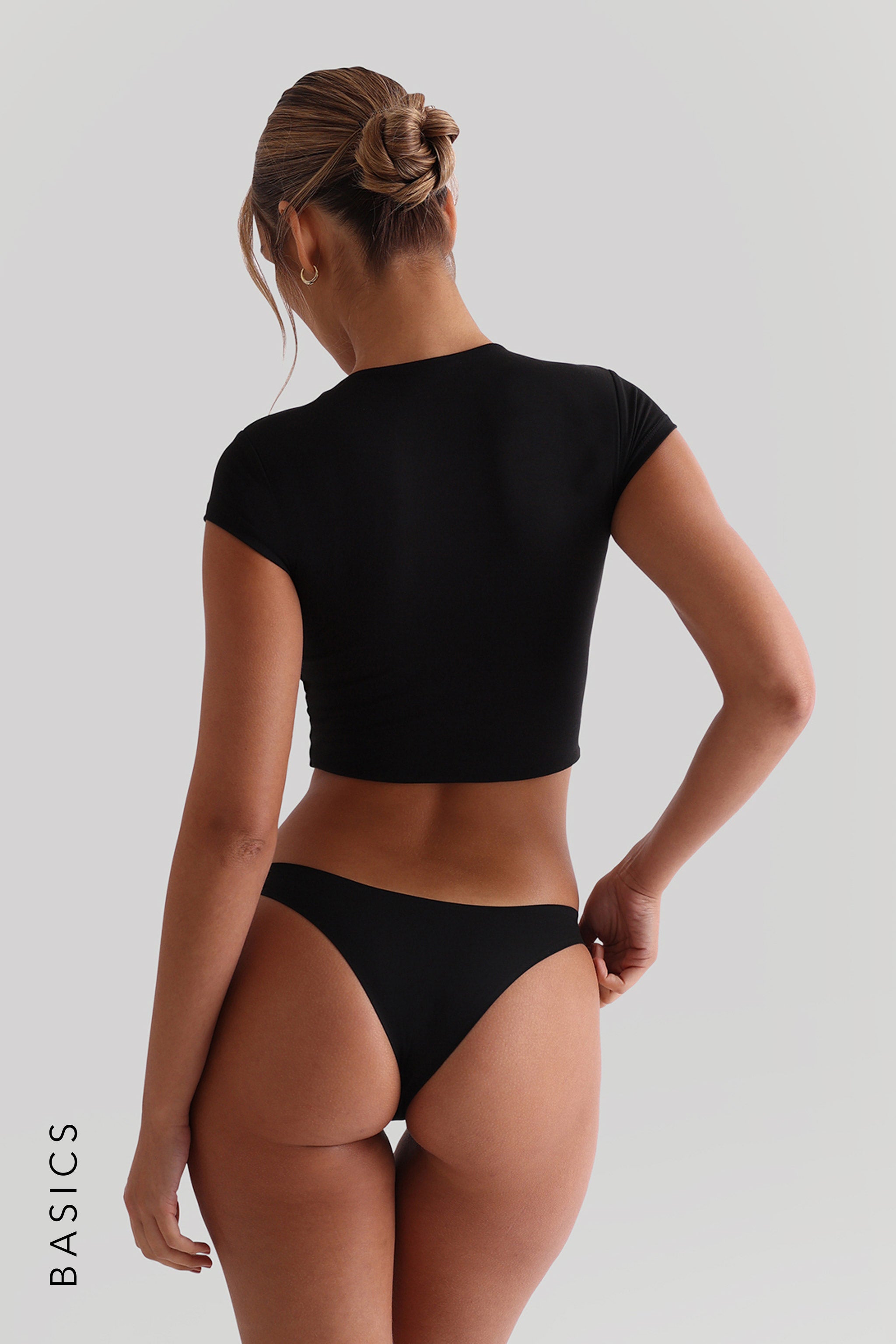 Made in our Signature Fabric, the Cropped Baby Tee is the shorter version of our Baby Tee. It features the same cap sleeves and a high neckline.