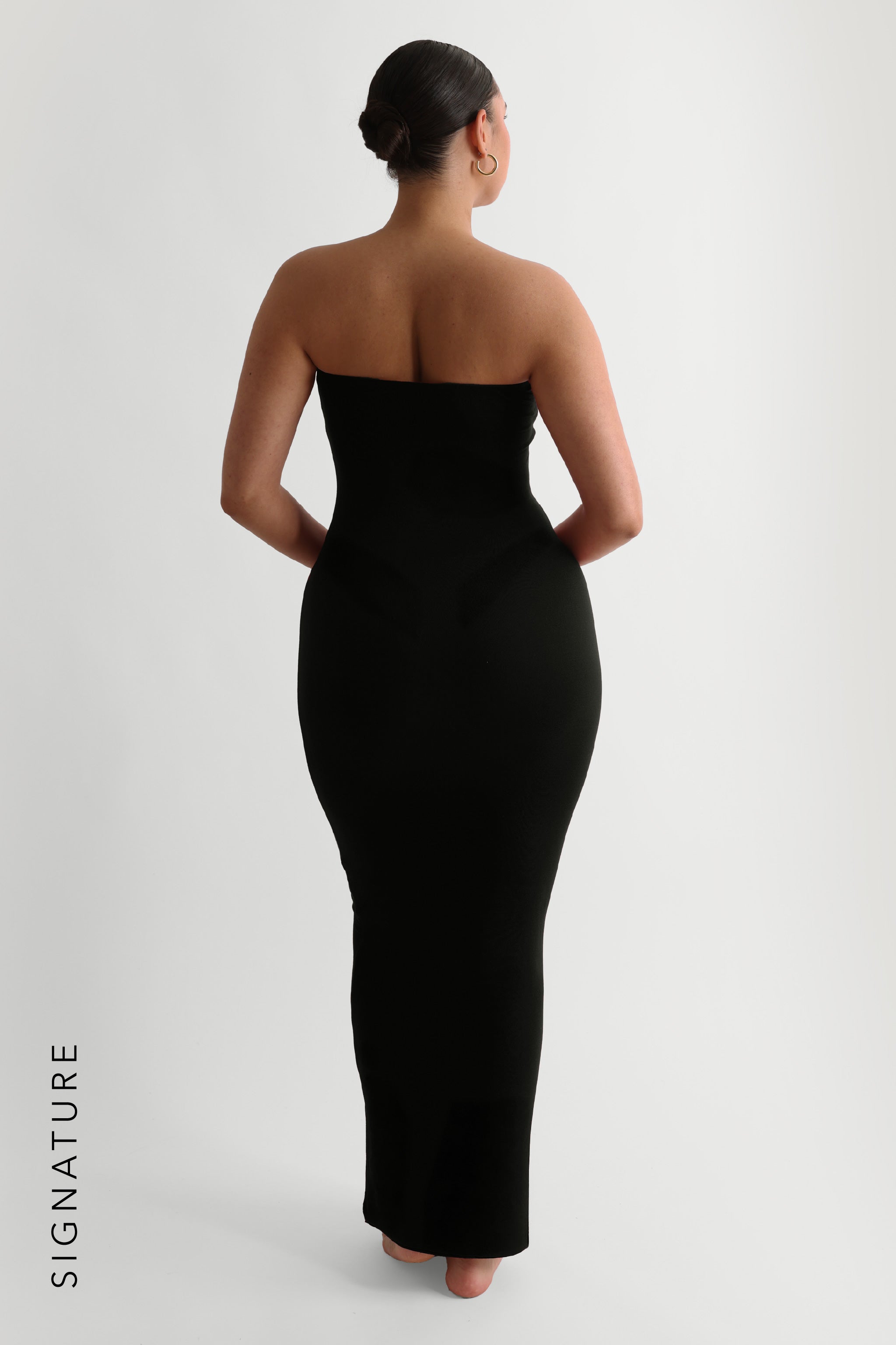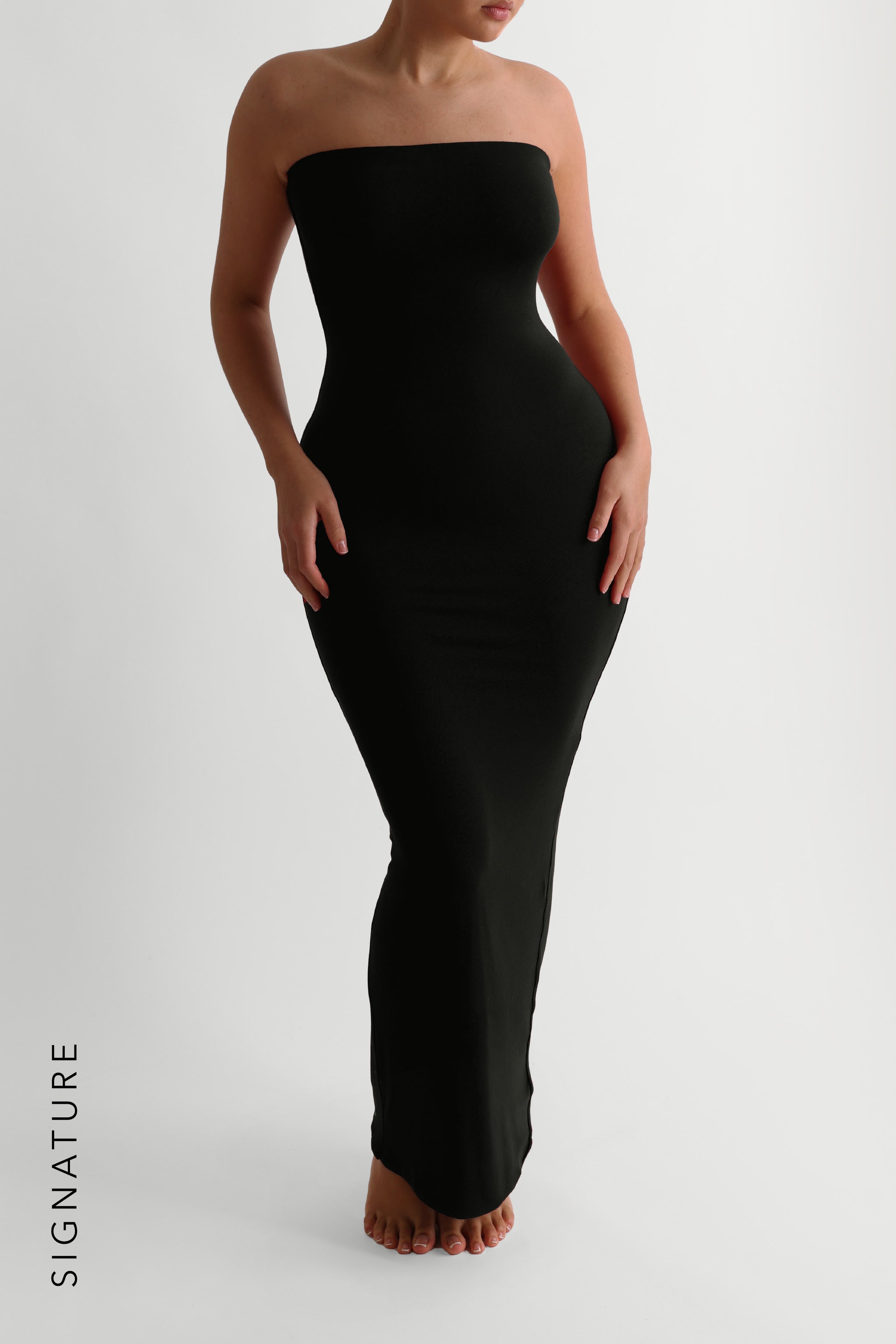 The Classic Tube Maxi Dress is effortlessly chic and flattering. With its sleek, strapless design and fitted silhouette, it offers a form-hugging fit, providing comfort and elegance for any occasion.