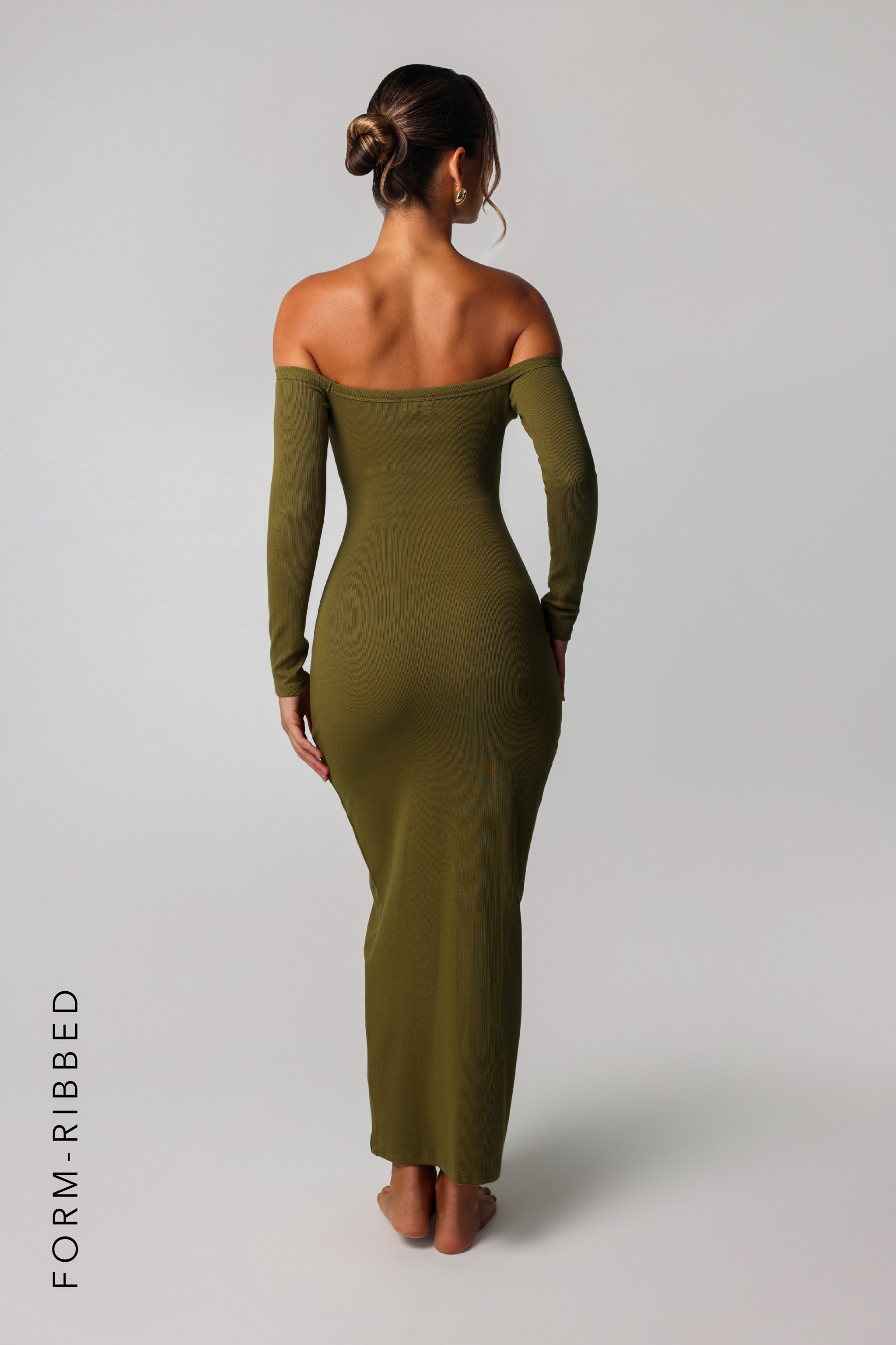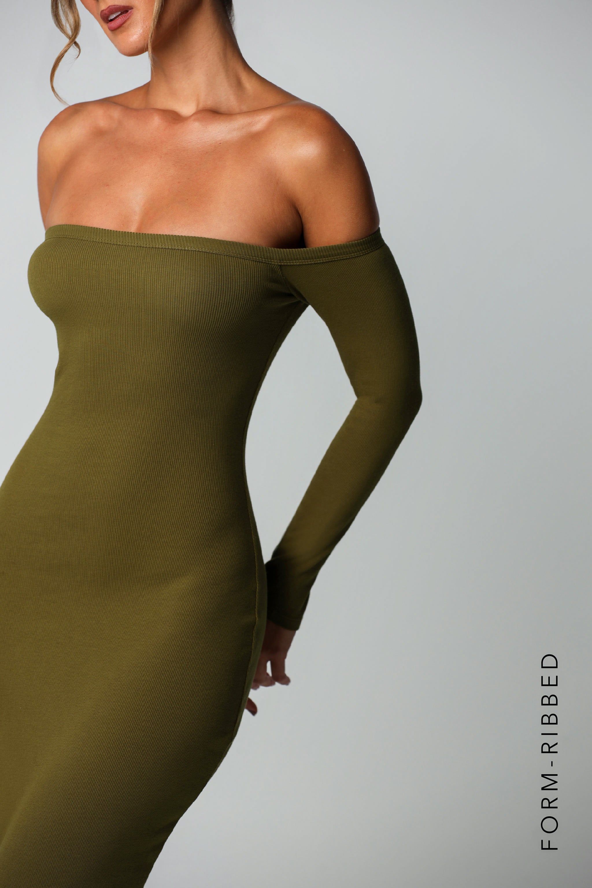 Form Ribbed Off Shoulder Maxi Dress - Olive