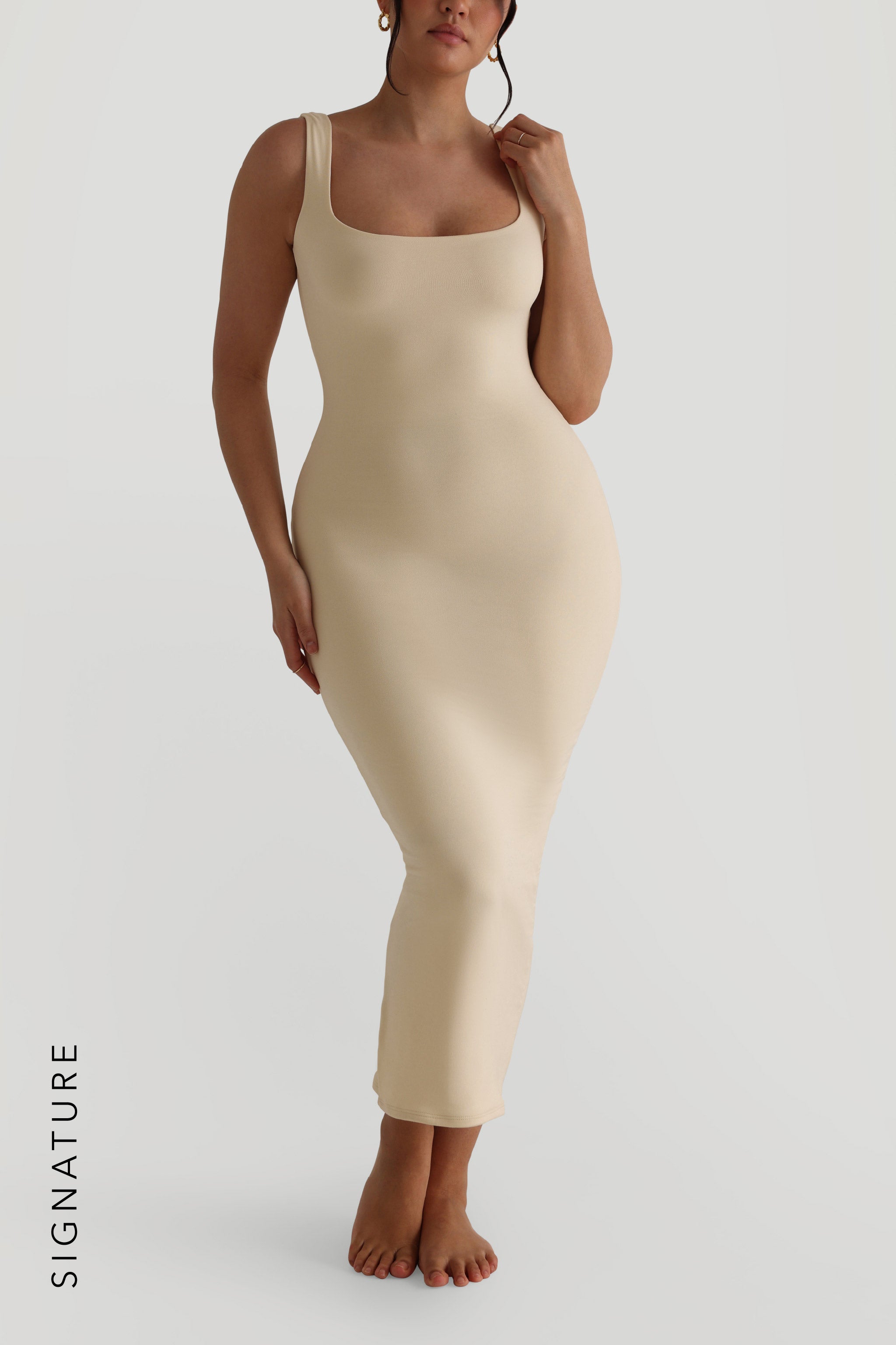 Introducing our Low Back Maxi Dress with a square neckline and low back design. The dress is made with our double-layered, signature fabric providing your figure with support and comfort as the perfect transition from day to night.