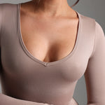 V-Shape Long Sleeve Midi Dress - Warm Mocha