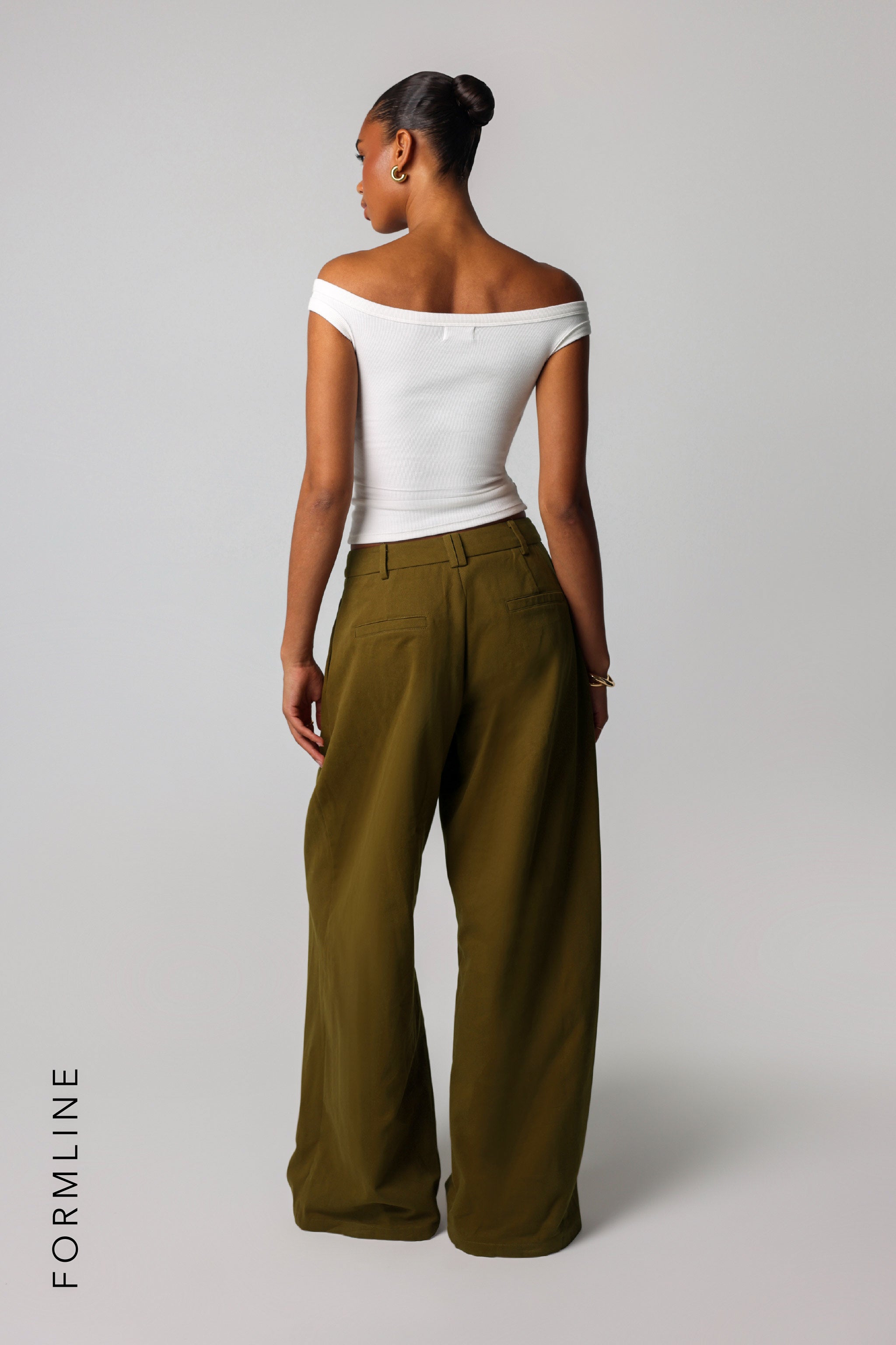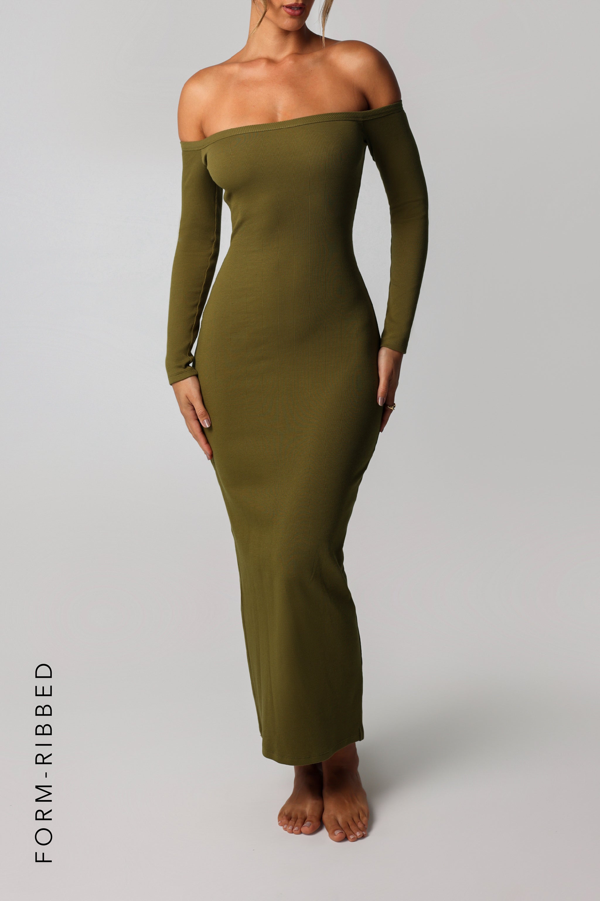 Form Ribbed Off Shoulder Maxi Dress - Olive