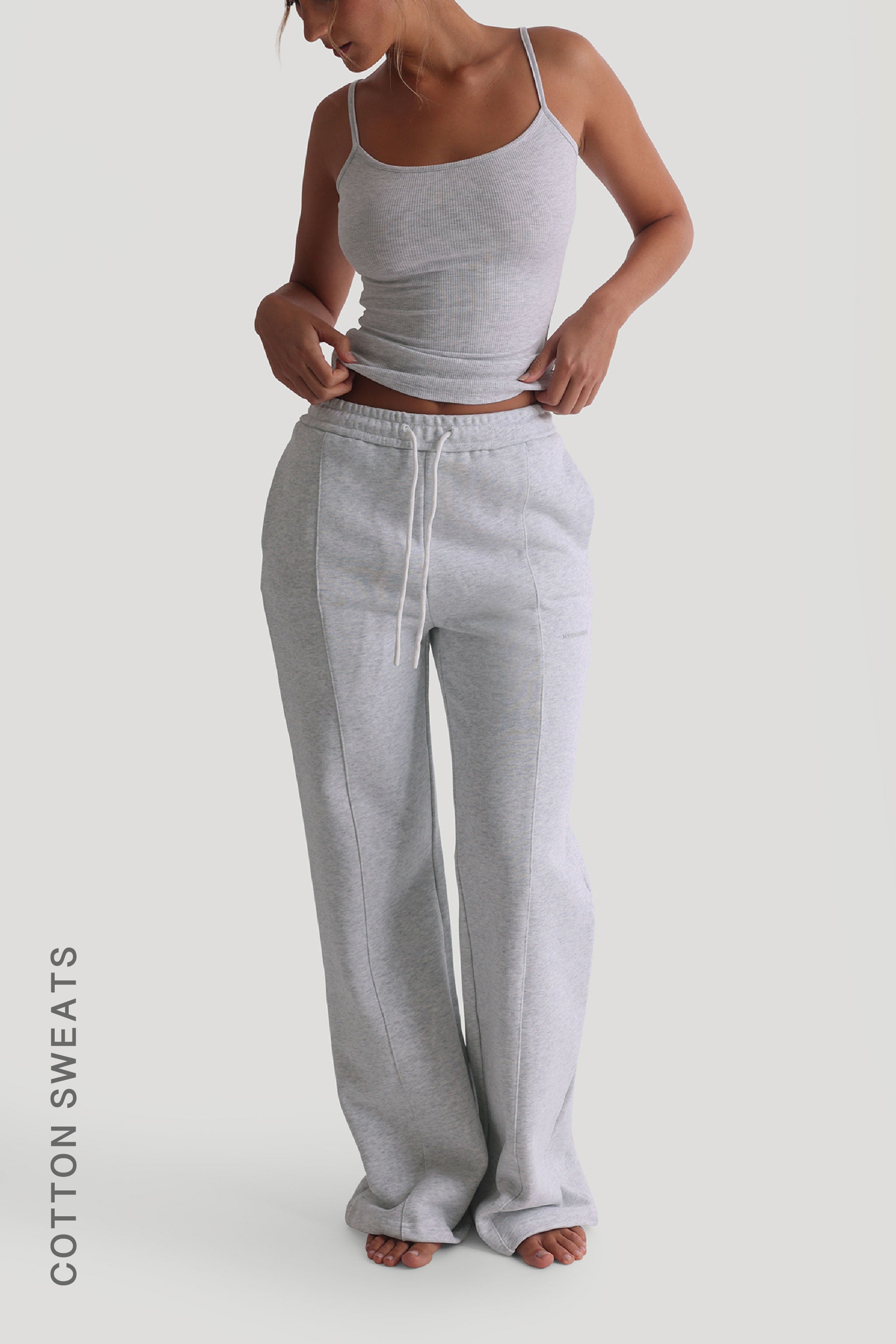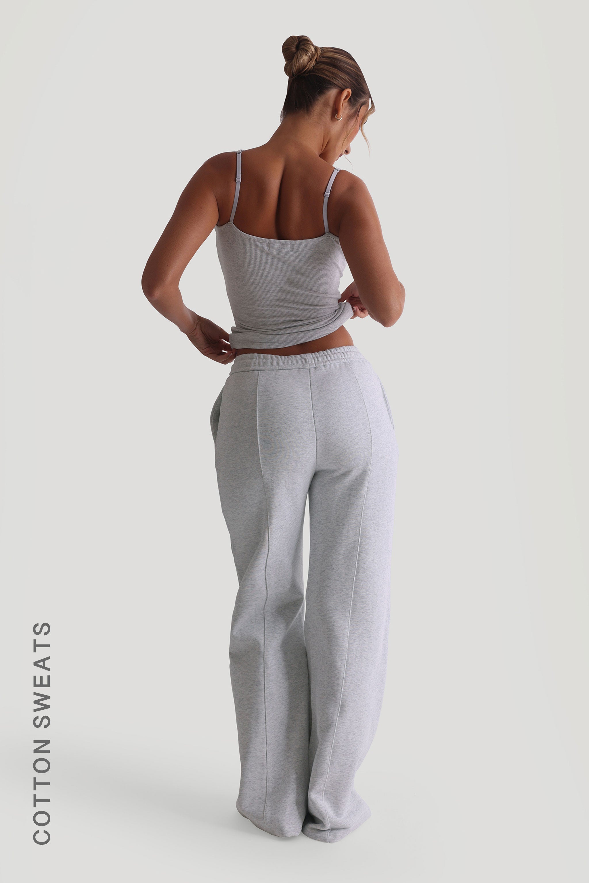 Structured Wide Leg Sweatpants - Light Heather Gray