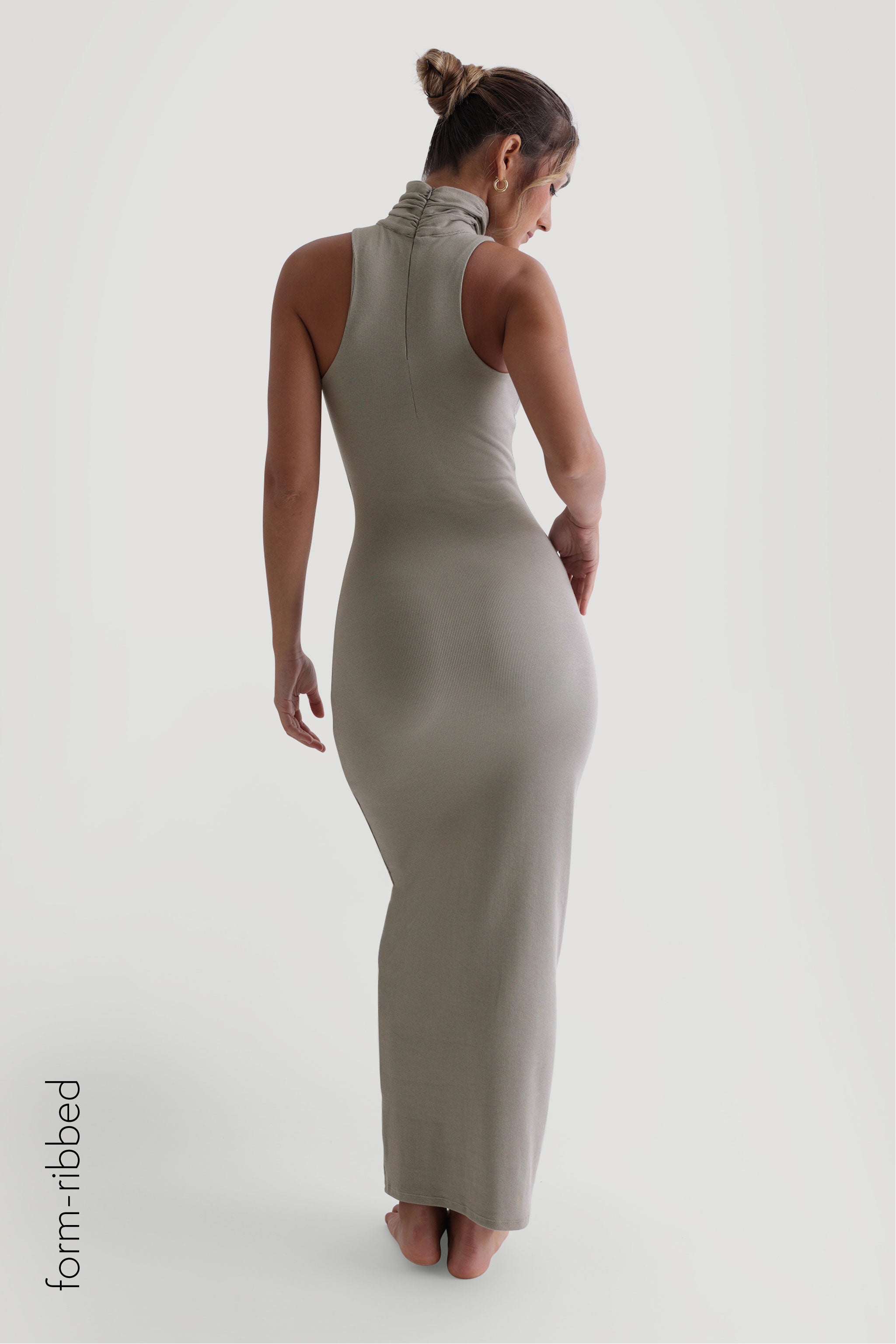 Sleeveless Turtleneck Form-Ribbed Maxi Dress - Quiet sage