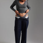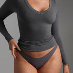 V-Shape Long Sleeve T-Shirt - Dark Stone Gray