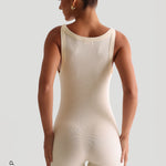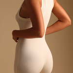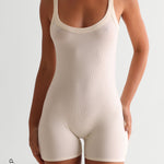 Where softness meets simplicity. Inspired by the tank, the Round-Neck Micro-Ribbed Romper is made to hold you gently. The round neckline flatters, while the micro-ribbed fabric molds softly to your frame. It’s the kind of piece you reach for when it's time to slow down.