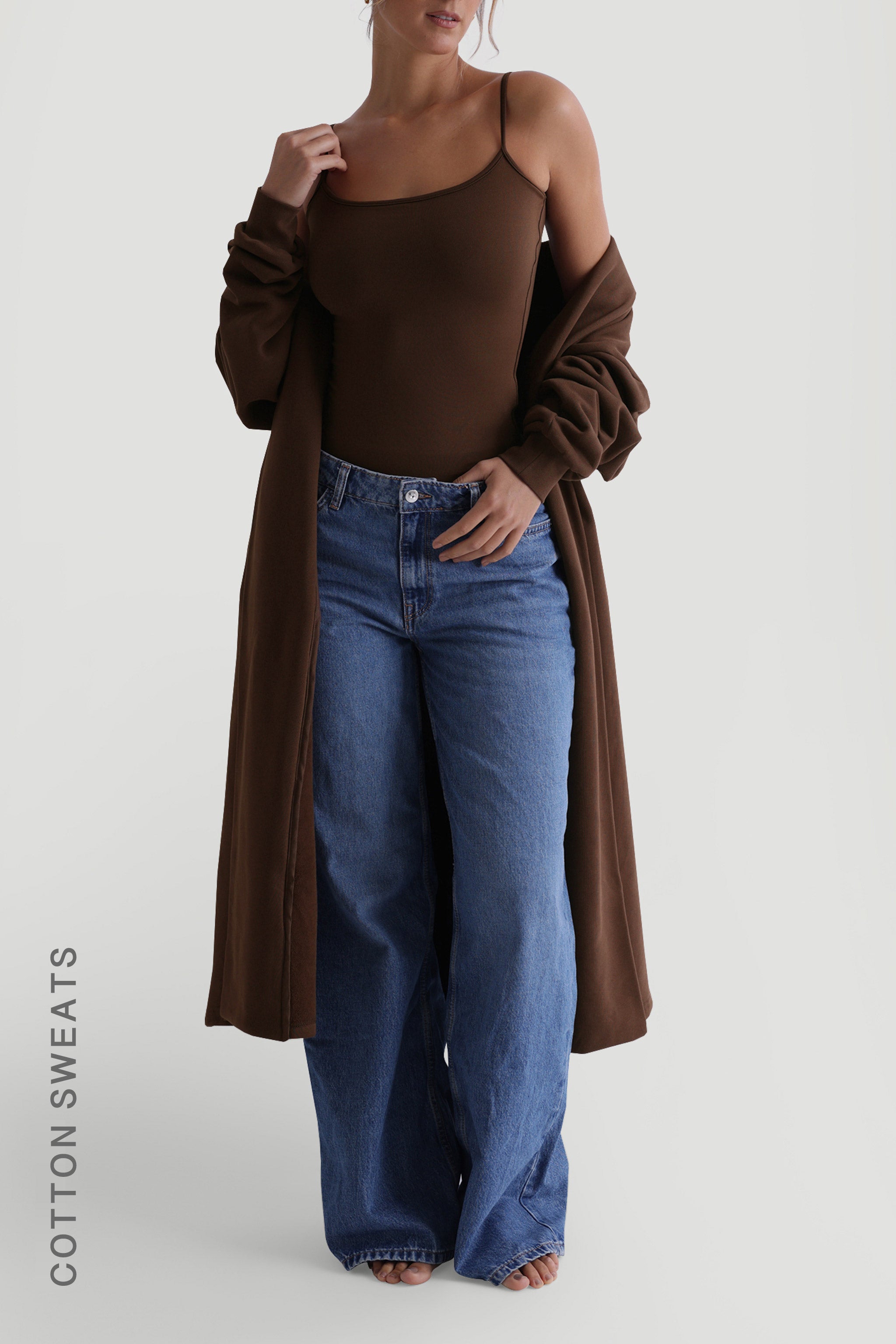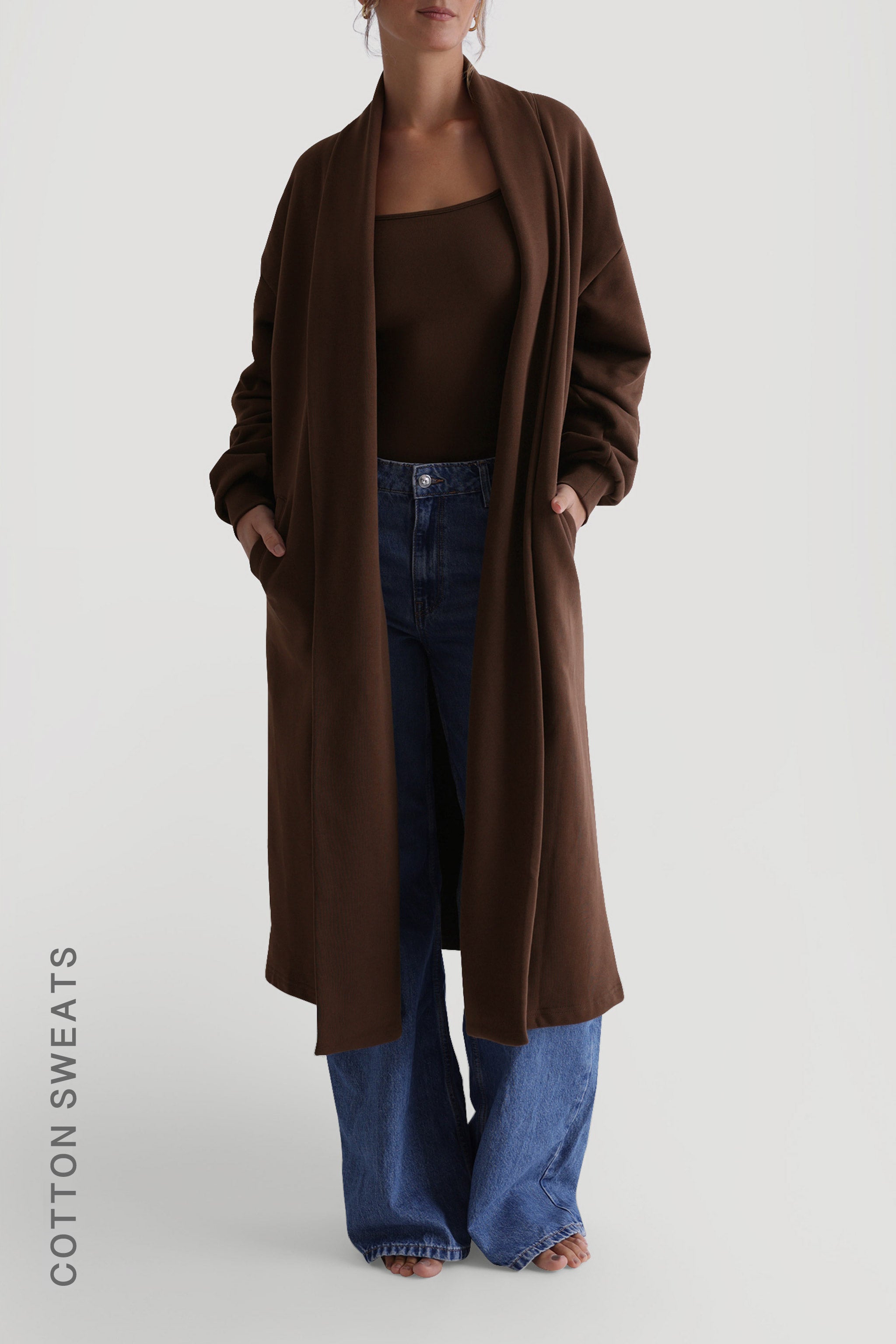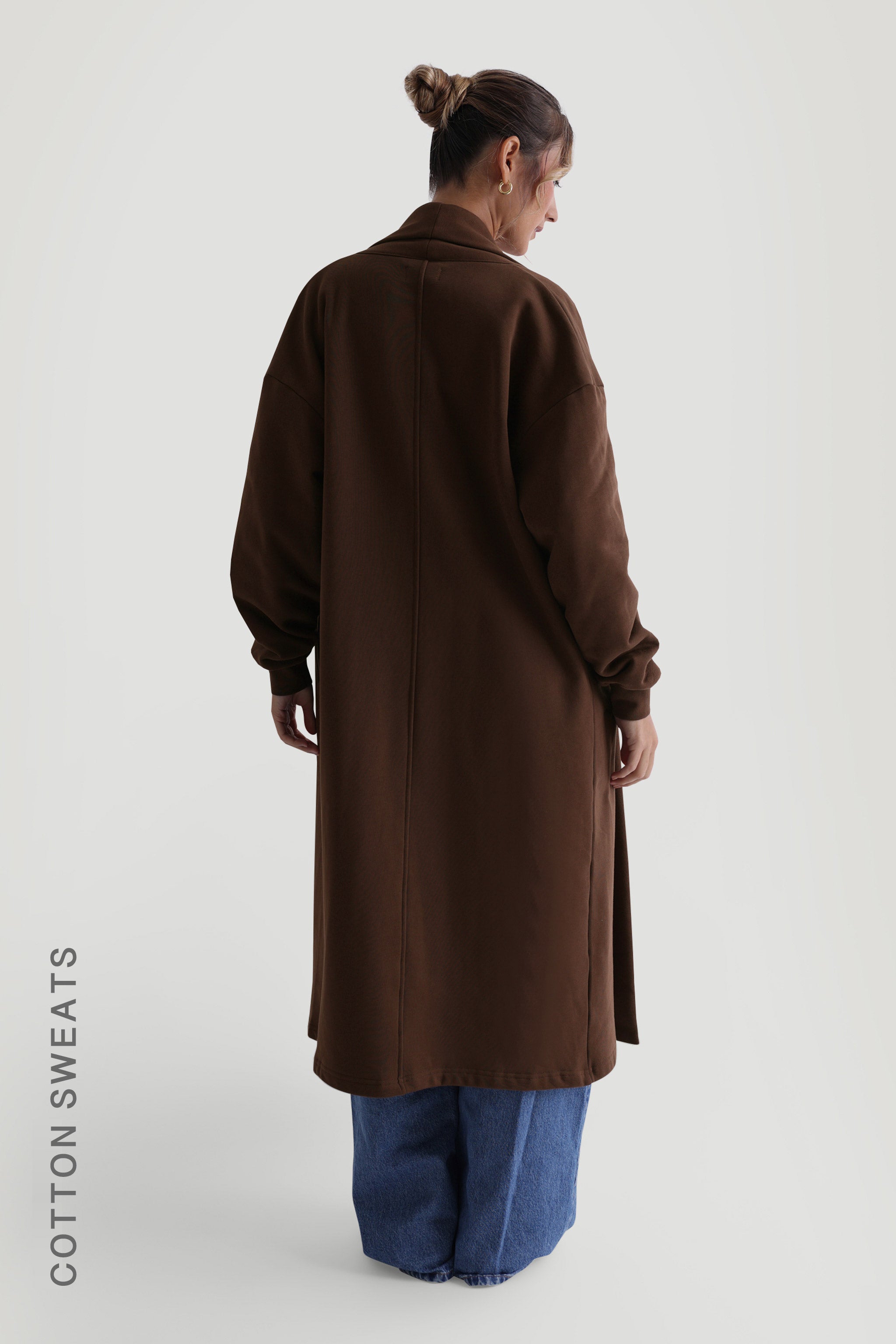 To maintain its structure over time, the Oversized Sweat Cardigan was designed in a thick, heavyweight fabric that sits comfortably on the skin. It features an open front and full-length lapel for added detail and contrast.