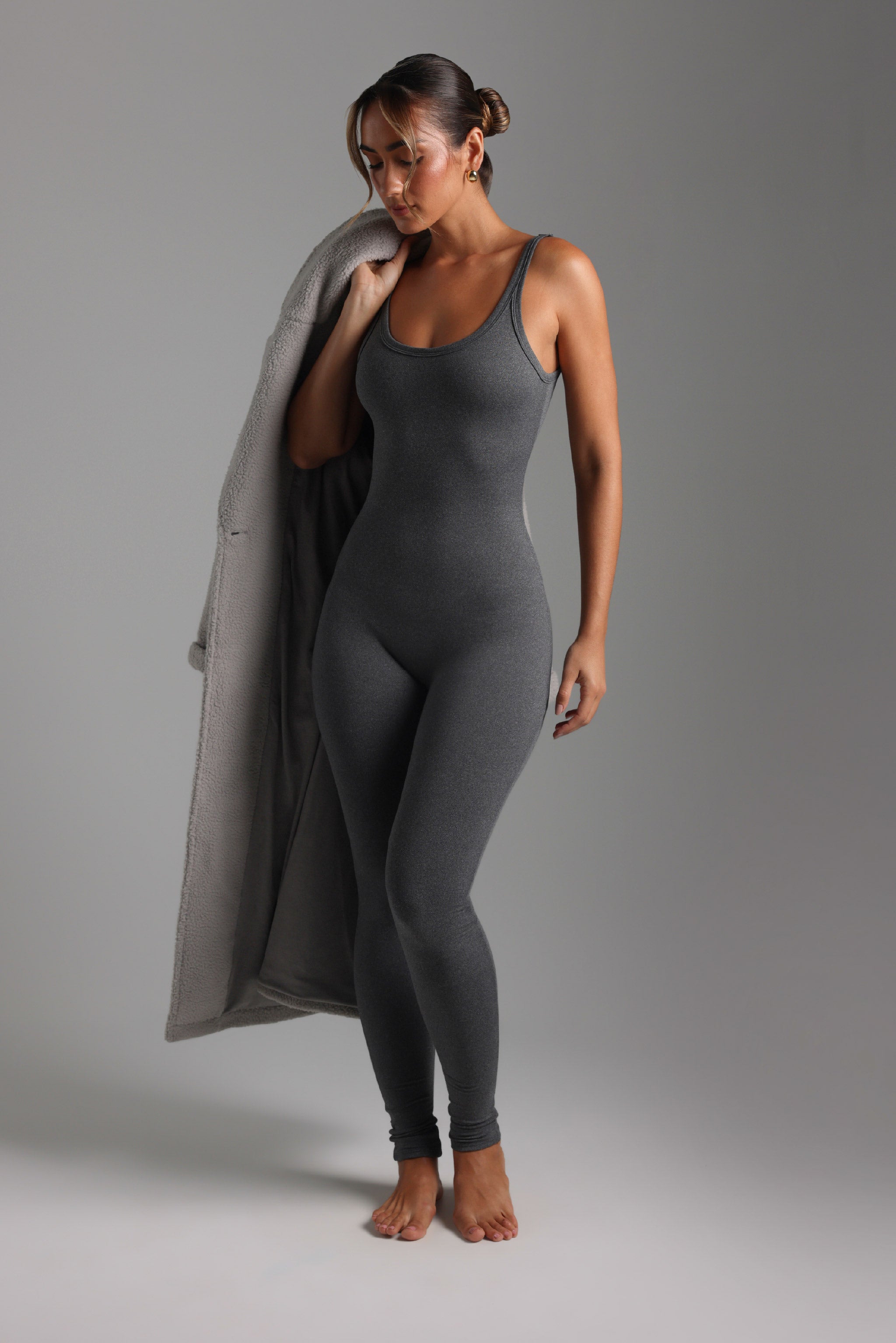 Banded Scoop Neck Jumpsuit - Dark Stone Gray