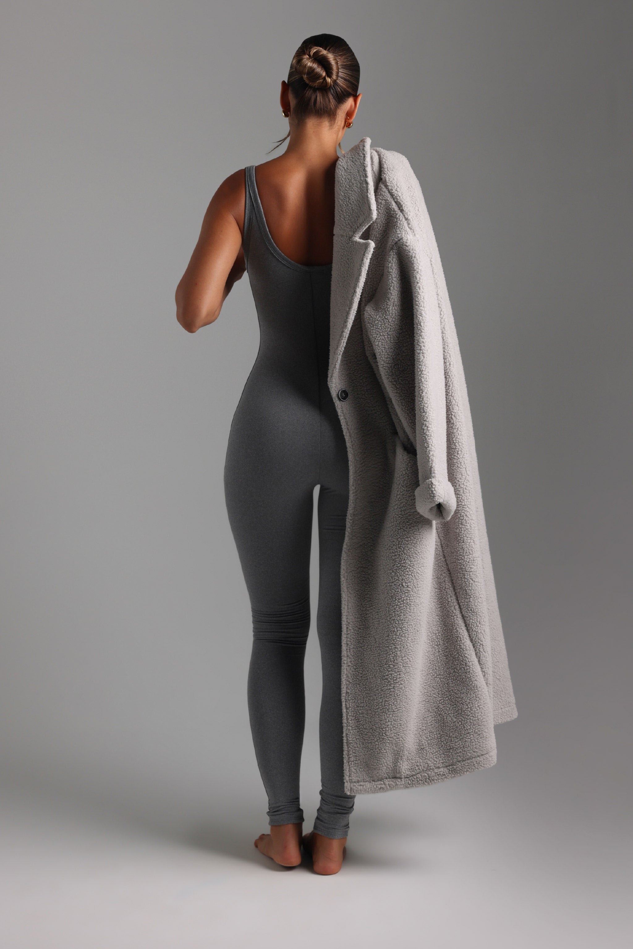 Banded Scoop Neck Jumpsuit - Stone Gray