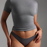 Known as our No-Bra Tee, the Mist Short Sleeve T-Shirt is our best-selling piece. It is made in our Signature fabric and provides support for all chest sizes without the need for a bra.