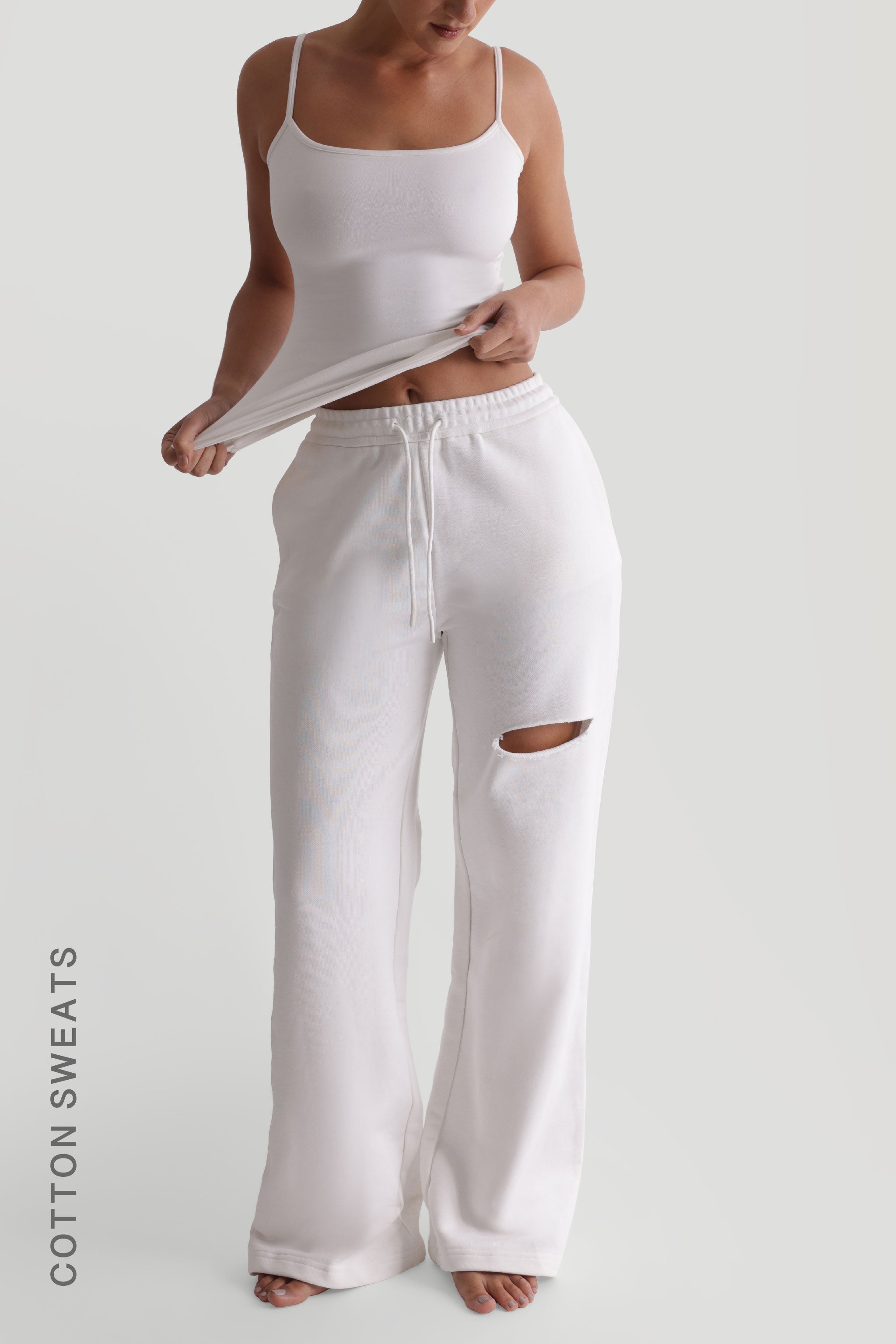 Cut-Out Wide Leg Sweatpants - White