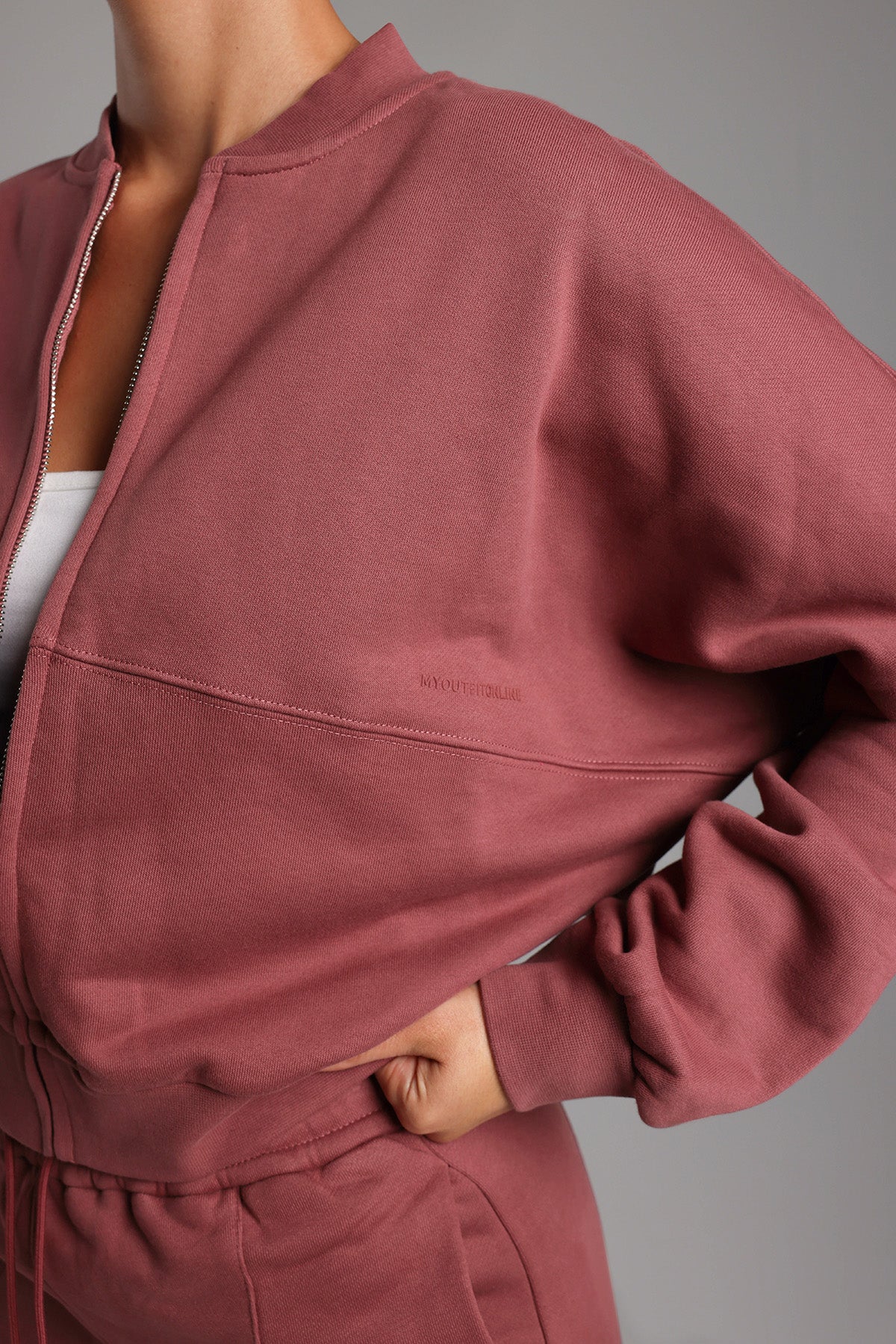 The Oversized Bomber Fit Jacket is a cropped bomber-style, oversized jacket that features a zip-up and high neckline. To ensure it maintains its structure and durability, it was made in a thick, heavyweight fabric that sits comfortably on the skin.