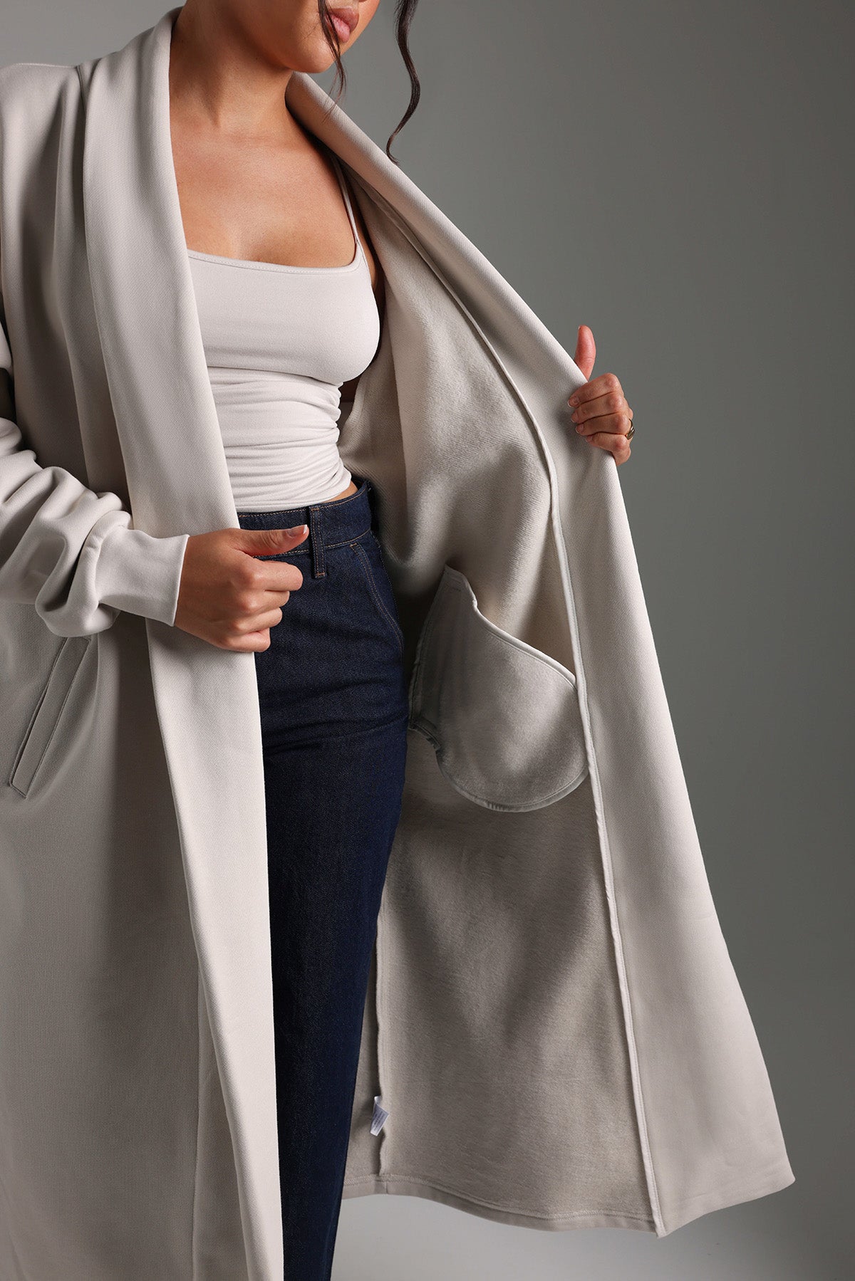 To maintain its structure over time, the Oversized Sweat Cardigan was designed in a thick, heavyweight fabric that sits comfortably on the skin. It features an open front and full-length lapel for added detail and contrast.