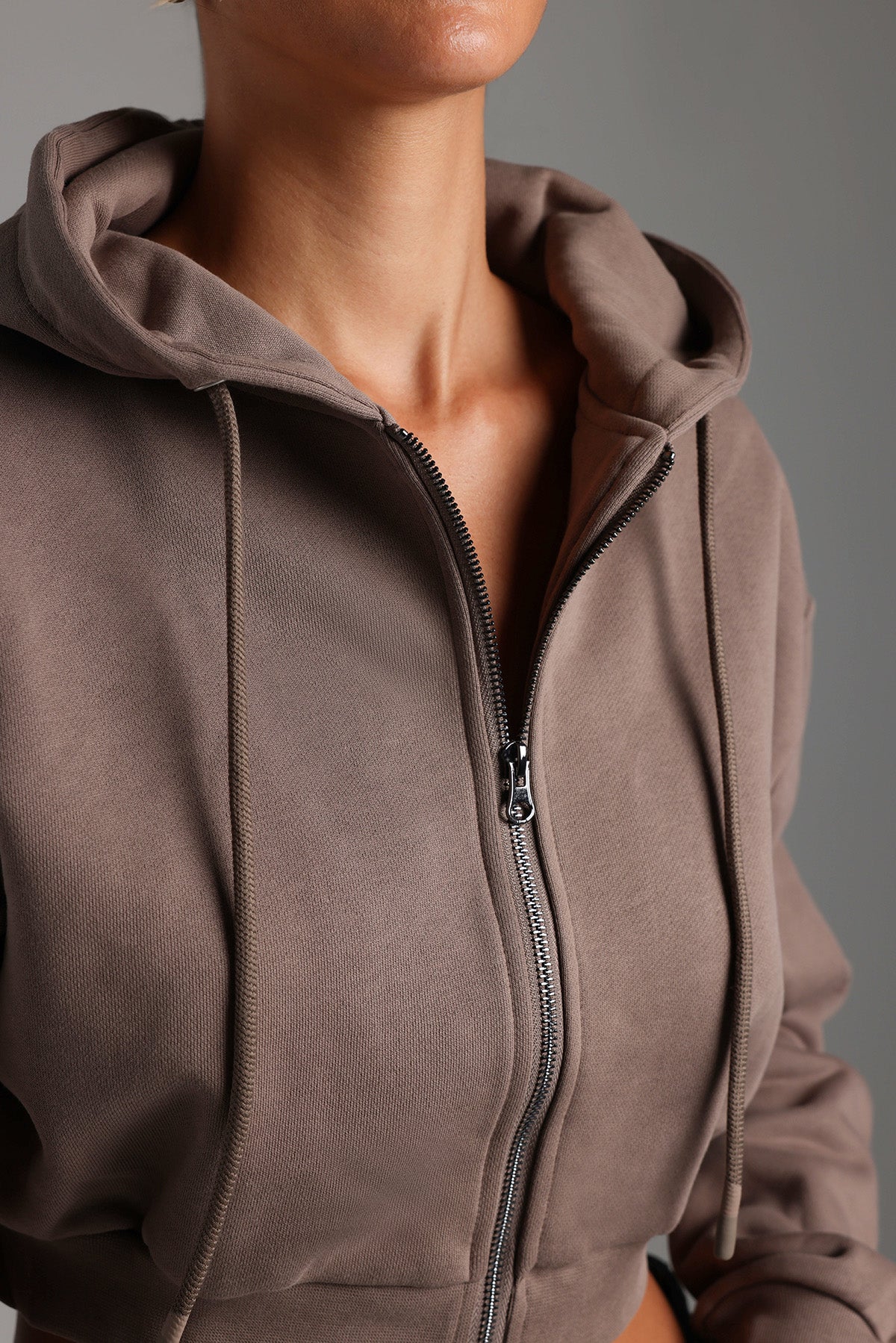 Key Zip-Up Cropped Hoodie - Deep Mocha