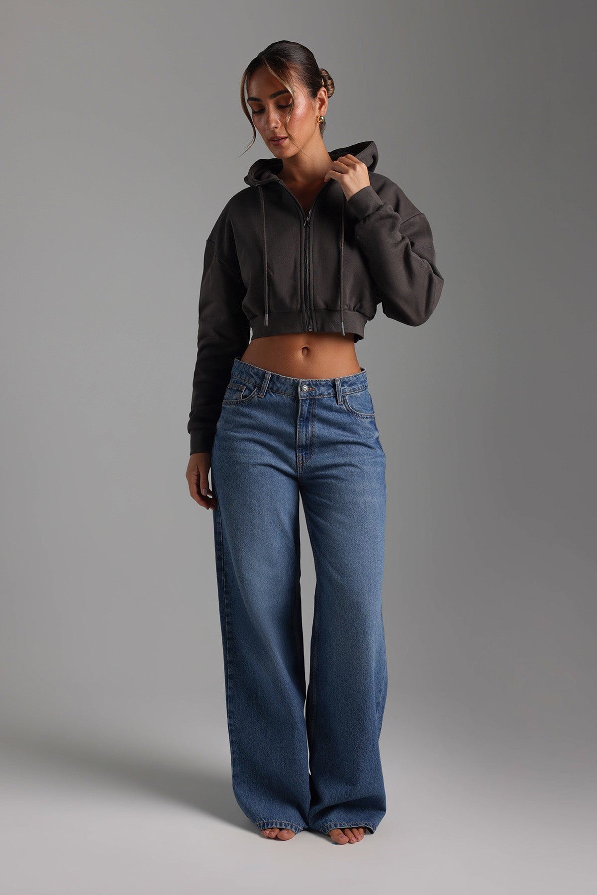Key Zip-Up Cropped Hoodie - Smoke