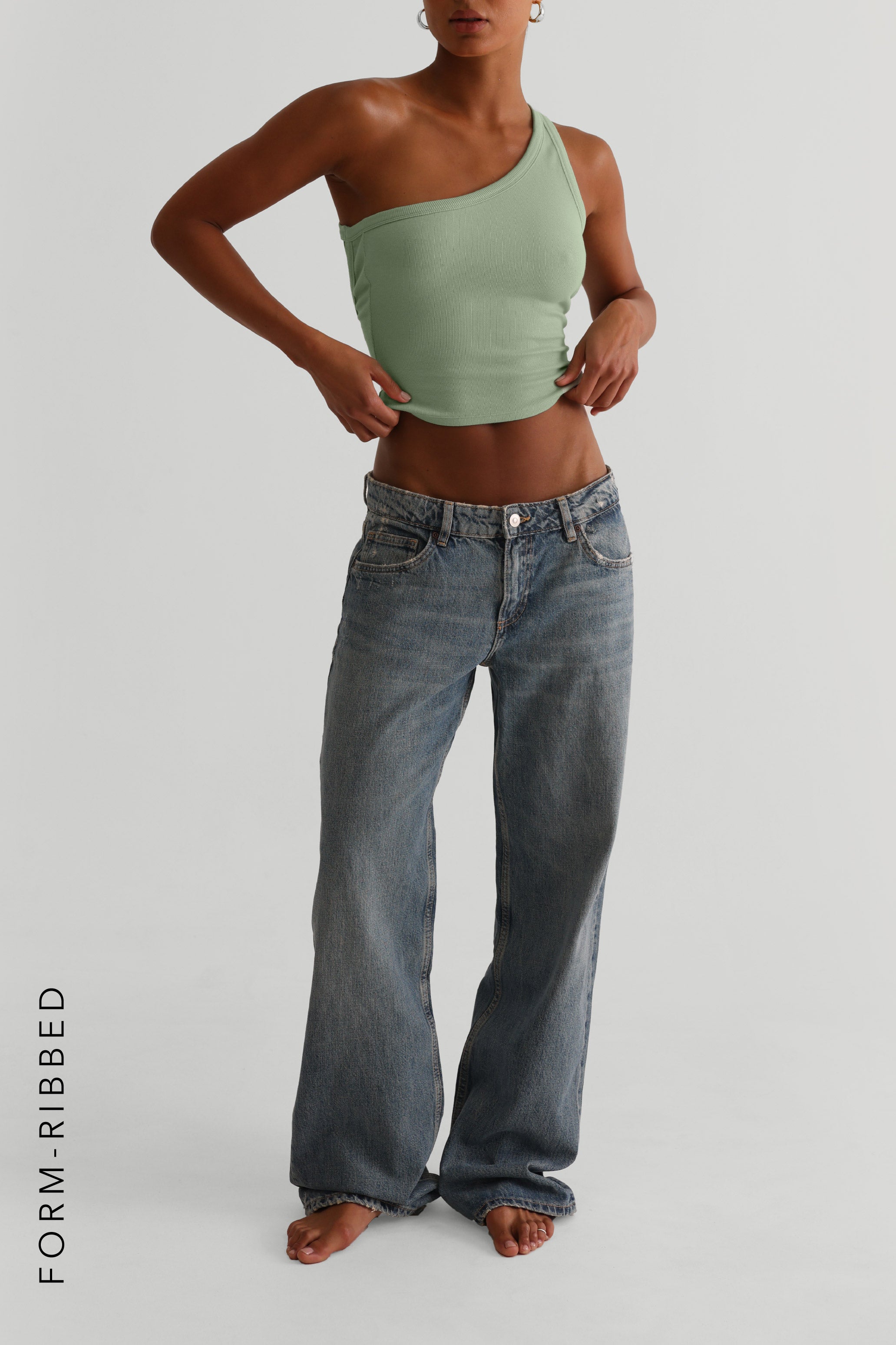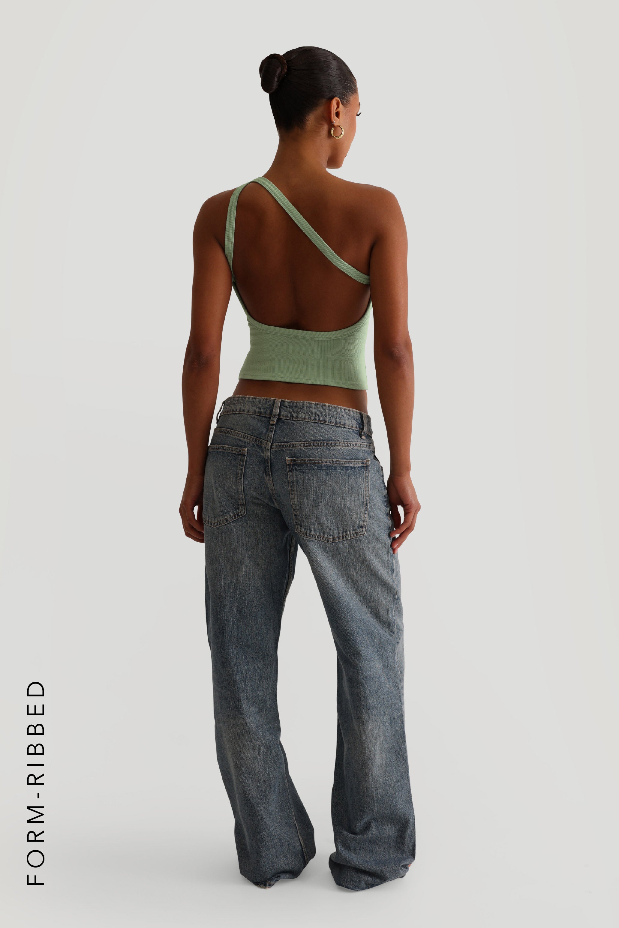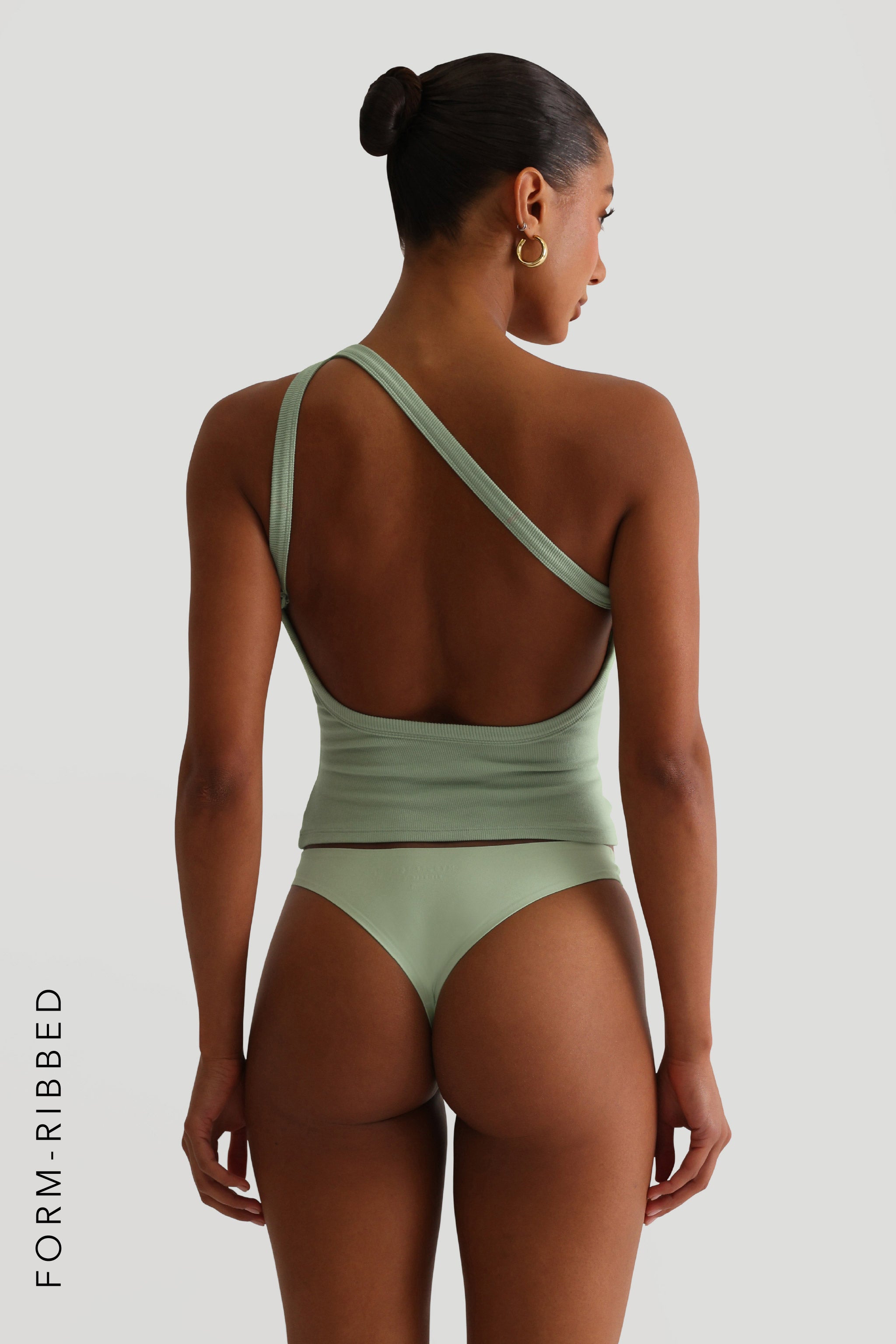 Form-Ribbed One-Shoulder Open-Back Top - Mint