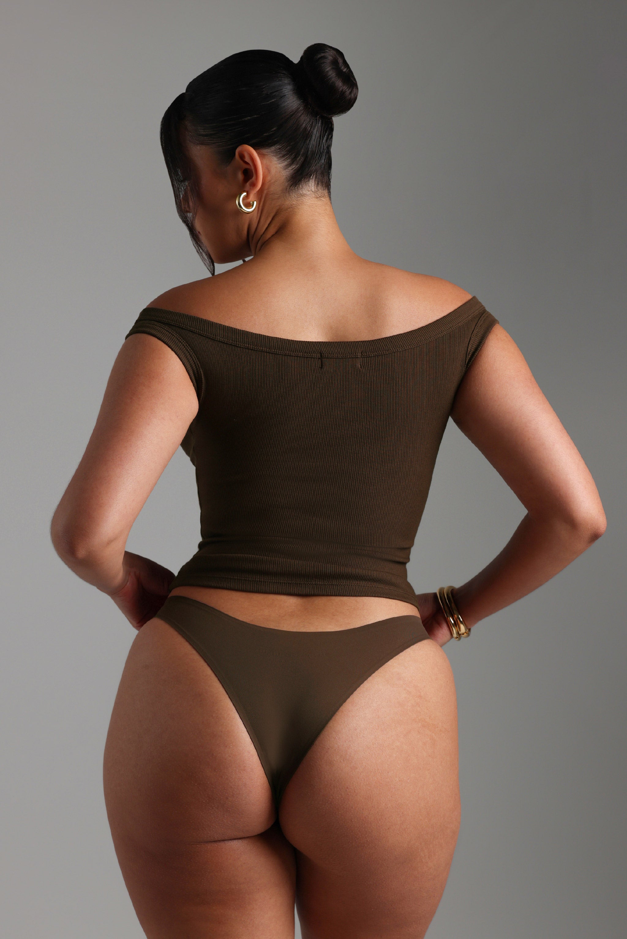 Form-Ribbed Off Shoulder Top - Brown Sugar