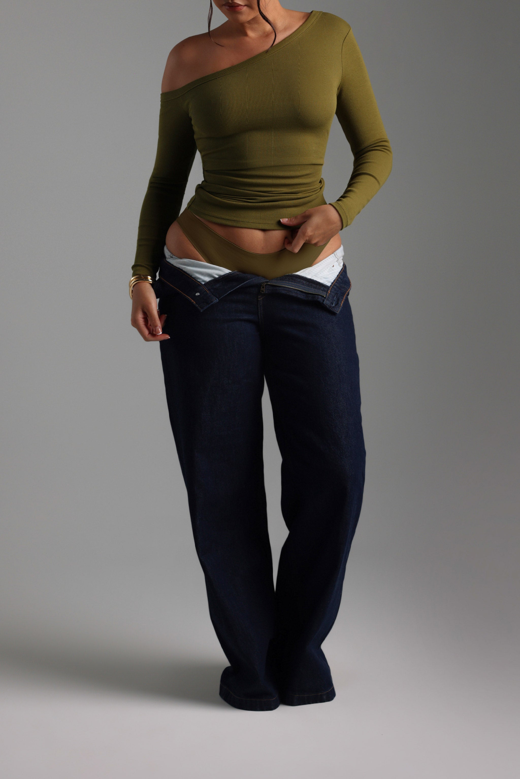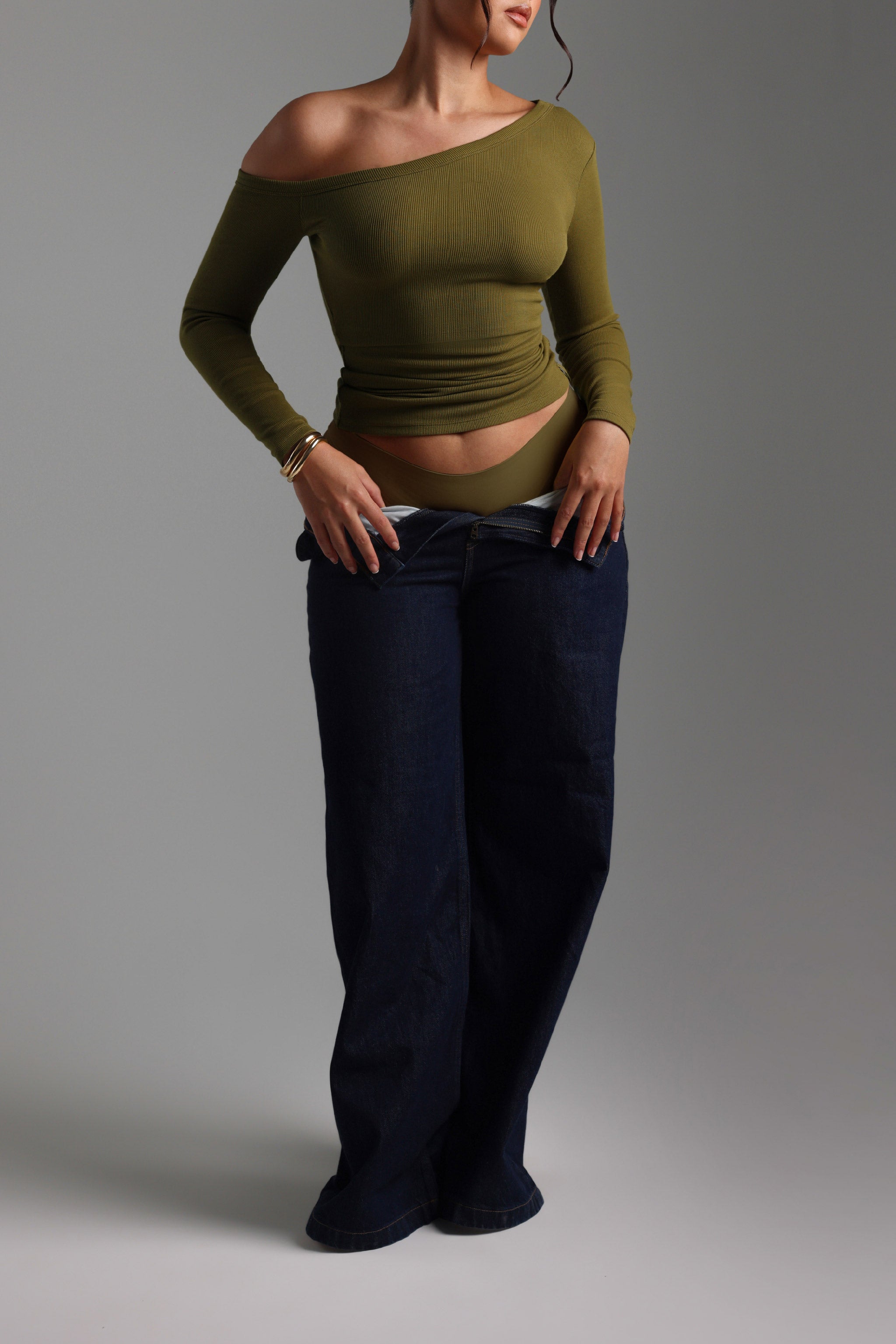 Form-Ribbed Gallerie Long Sleeve Top - Olive