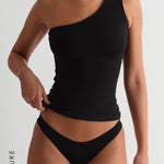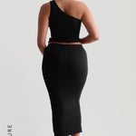 The One Shoulder T-Shirt features an exposed right shoulder for a touch of femininity, with a single strap and fabric that supports all chest sizes. This full-length top can be tucked in or left out, maintaining its seamless, flattering silhouette. Crafted from a fabric that gently cinches while feeling incredibly soft, it’s the perfect balance of comfort and elegance for everyday wear.