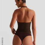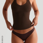 V-Neck Micro-Ribbed Halter Top - Toasted Cocoa