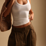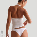 Made in our Micro-Ribbed Fabric, the V-Neck Micro-Ribbed Halter Top features a low-cut neckline and an airy open-back design that will complete your wardrobe. The perfect staple for any season, it is a timeless piece with a one-inch banding for added detail — truly the perfect blend of comfort and style.