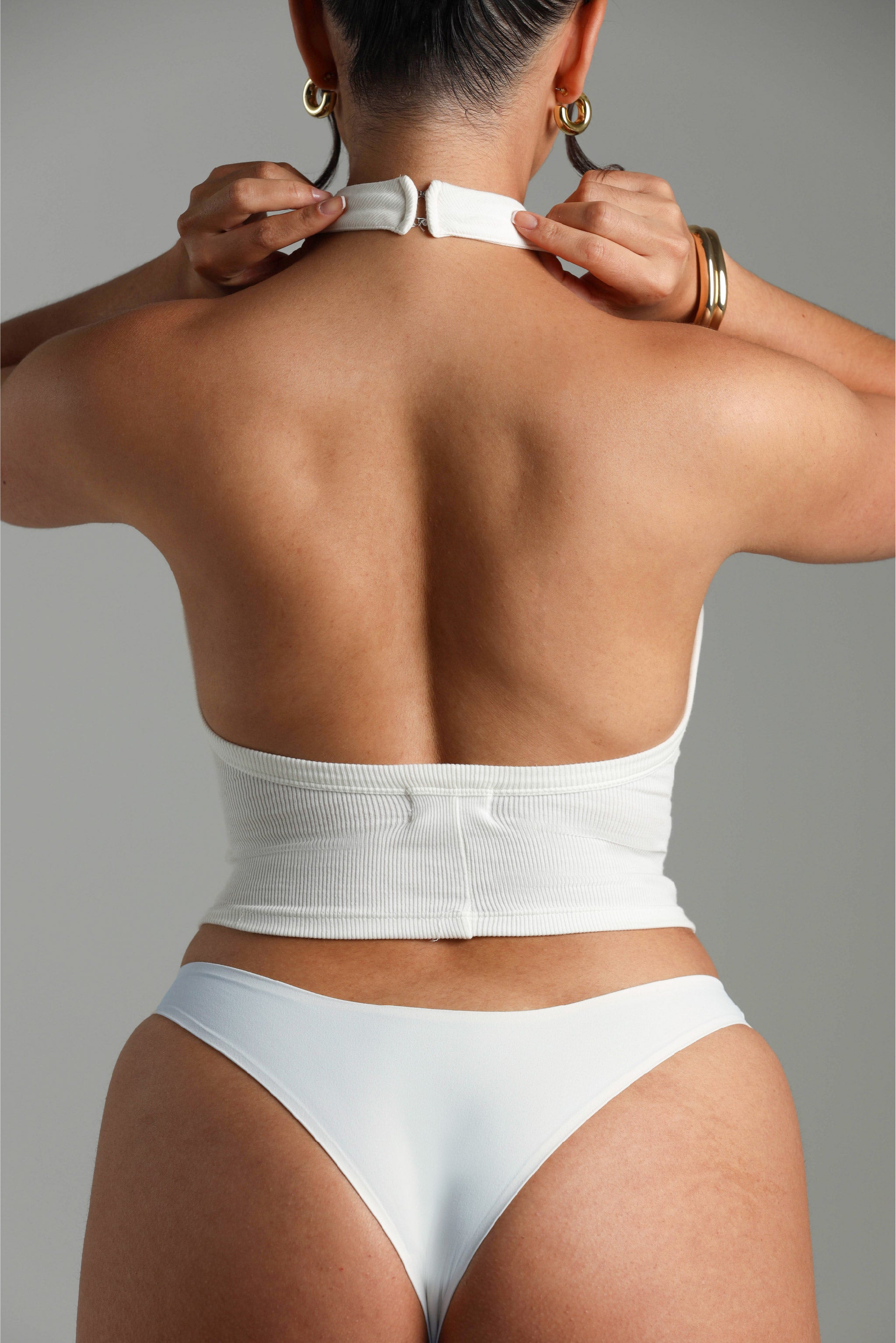 Created to contrast, the Form-Ribbed High Neck Top is refined in every way. Sculpted lines in the front meet a striking open back that leaves a lasting impression. The high neckline adds a touch of polish, while the exposed back reveals a bold, feminine edge, perfectly balancing minimalism with elegance.