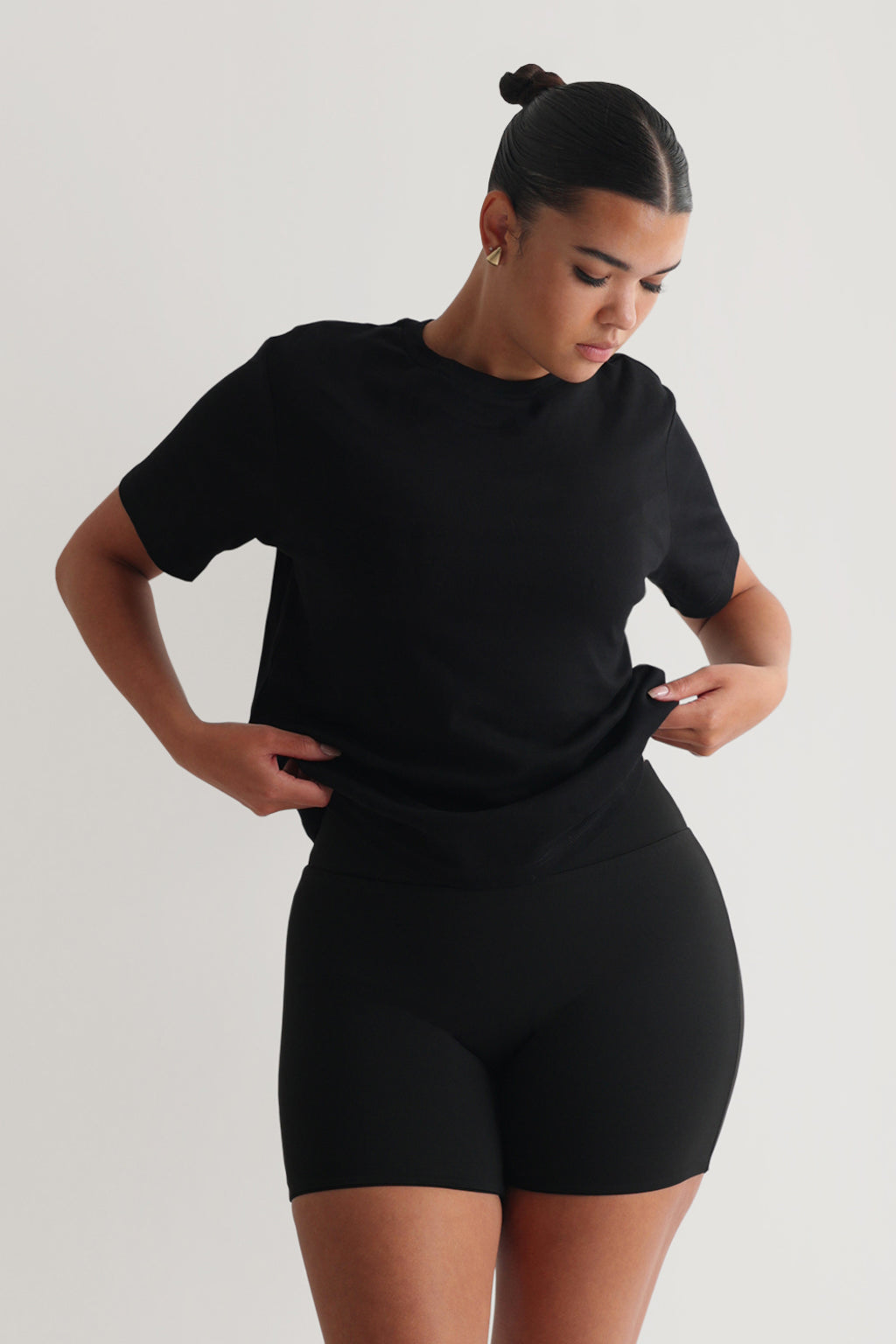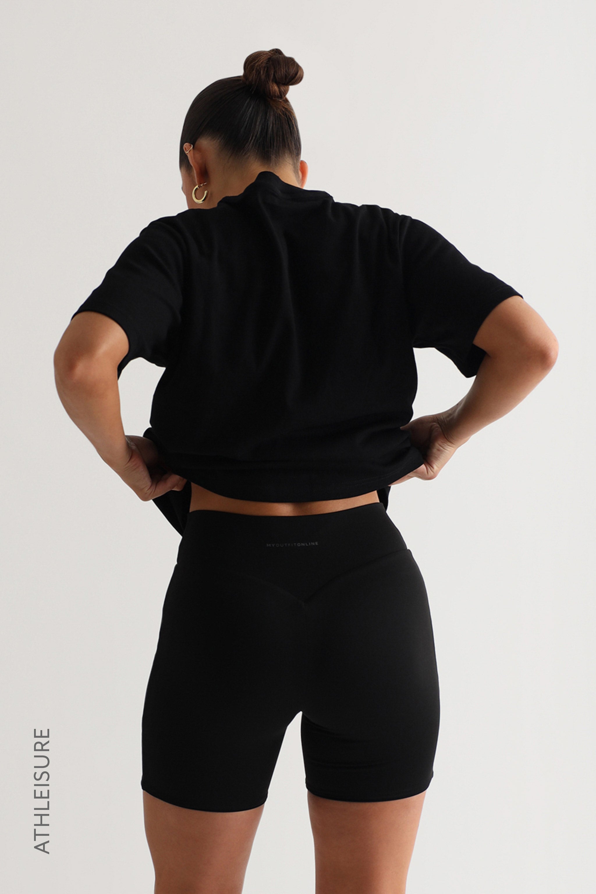 Athleisure-Shorts mit hoher Taille, 6 Zoll – Schwarz