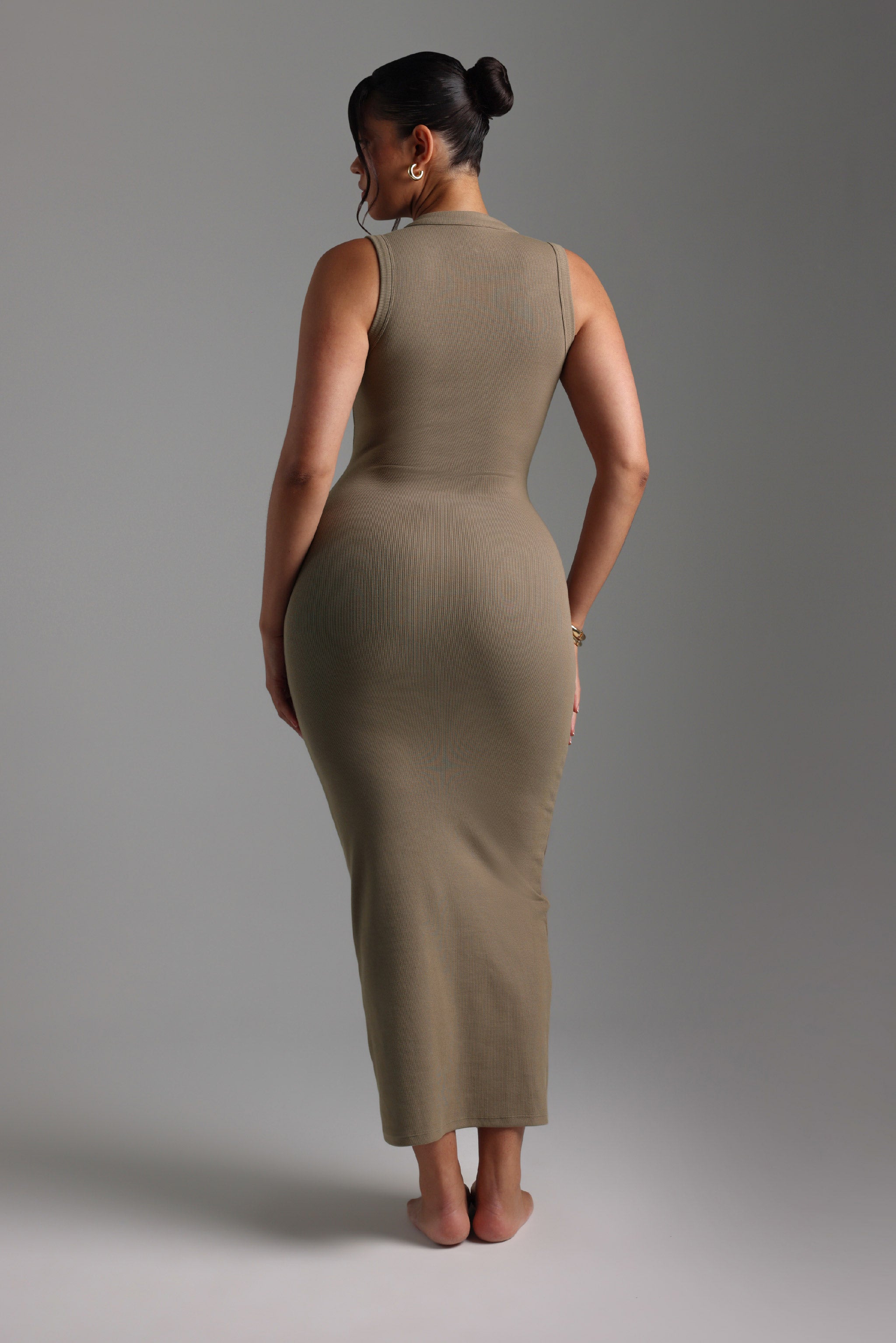 Form-Ribbed Plunge Split-Back Maxi Dress