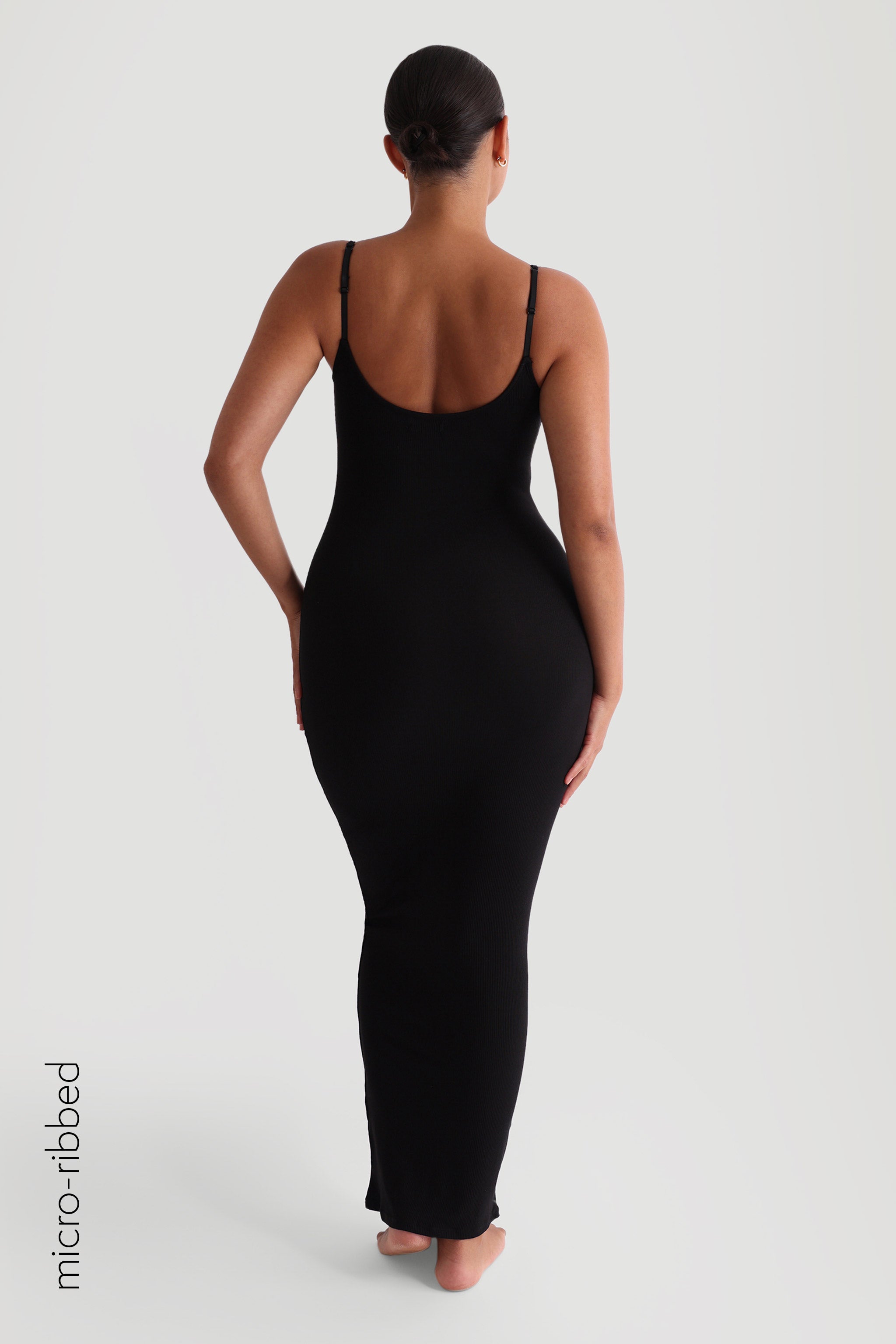 Das Slip-On Micro-Rippen-Maxikleid aus unserem Micro-Rippen-Stoff bietet eine leichtes, nahtloses Tragegefühl beim Reinschlüpfen. Es verfügt über verstellbare Träger und einen Rundhalsausschnitt, der allen Brustgrößen schmeichelt.