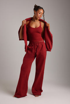 Round Neck Micro-Ribbed Tank Top - Cranberry