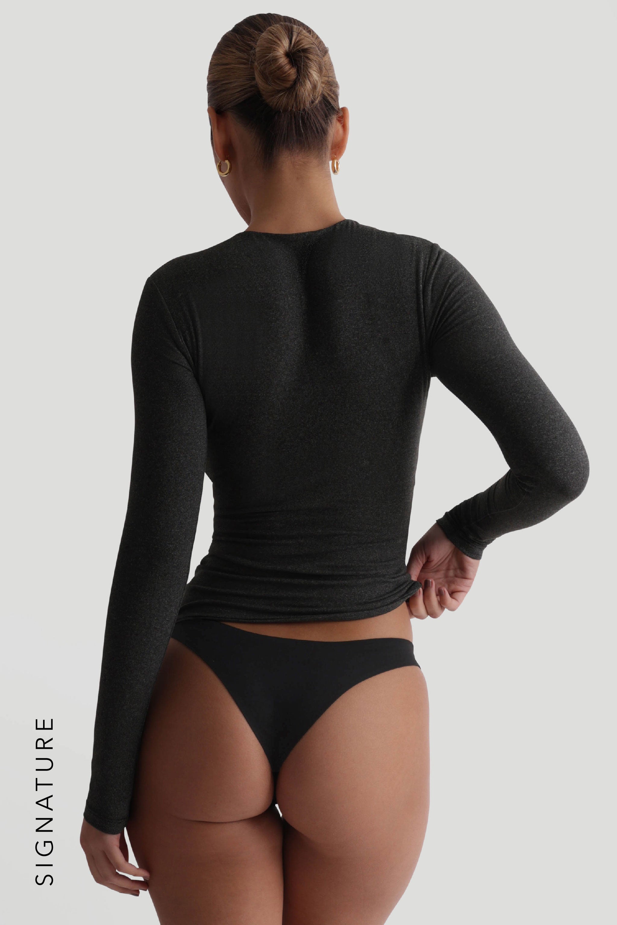 Highlights: double-lined body, single-lined sleeves, crew neckline, seamless look