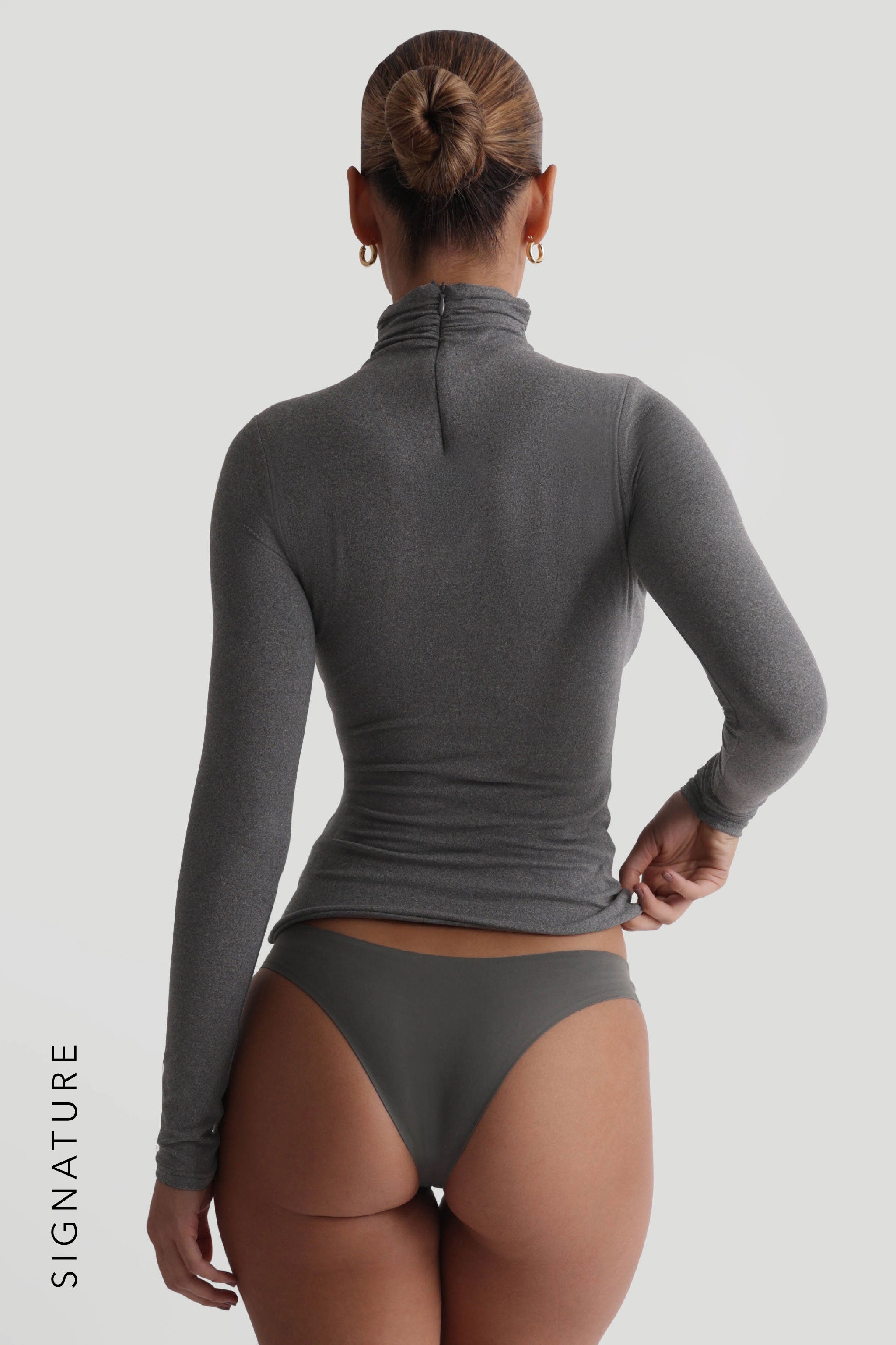 Refined Long Sleeve Turtleneck T-Shirt - Dark Stone Gray