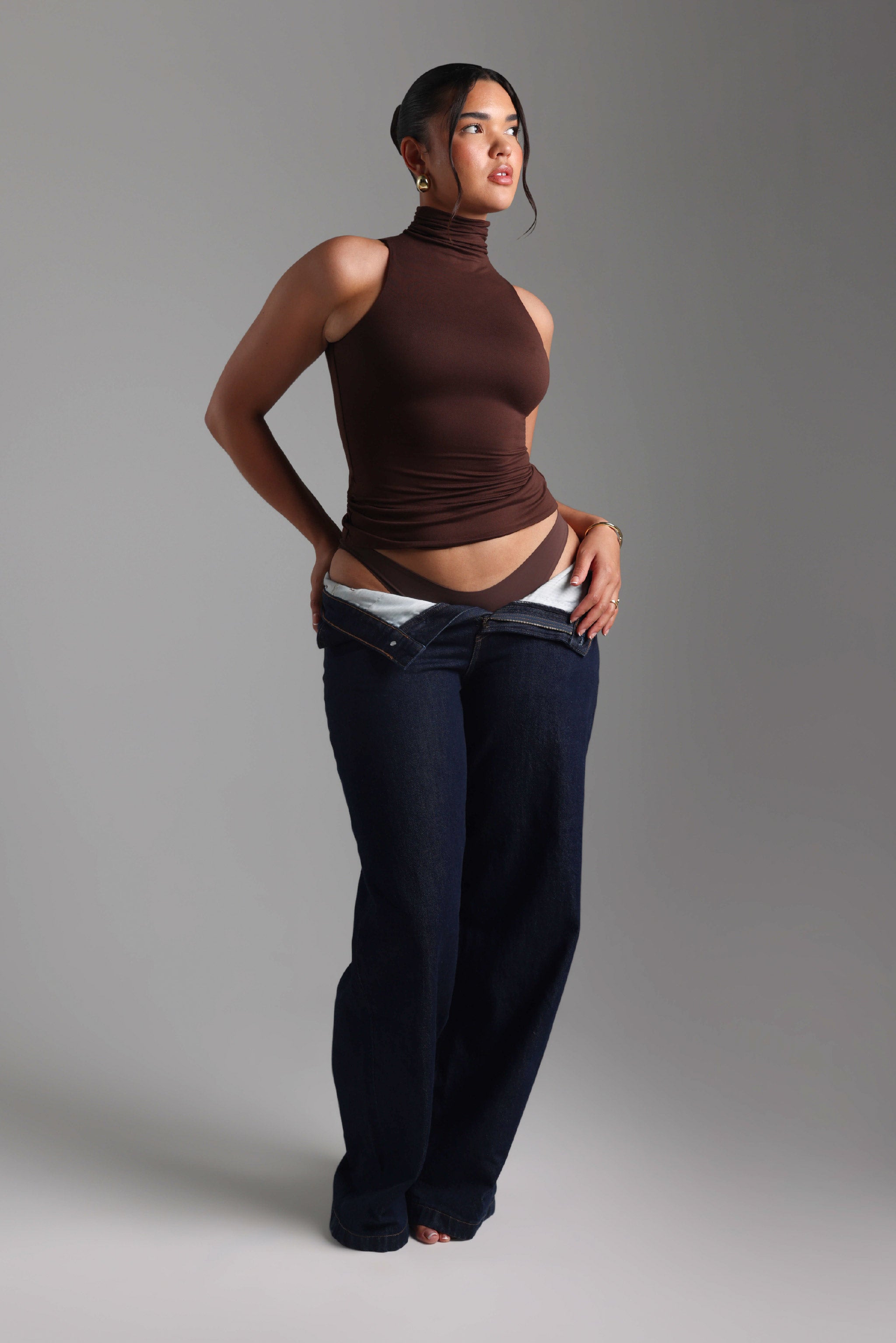 Refined Sleeveless Turtleneck T-Shirt - Chocolate