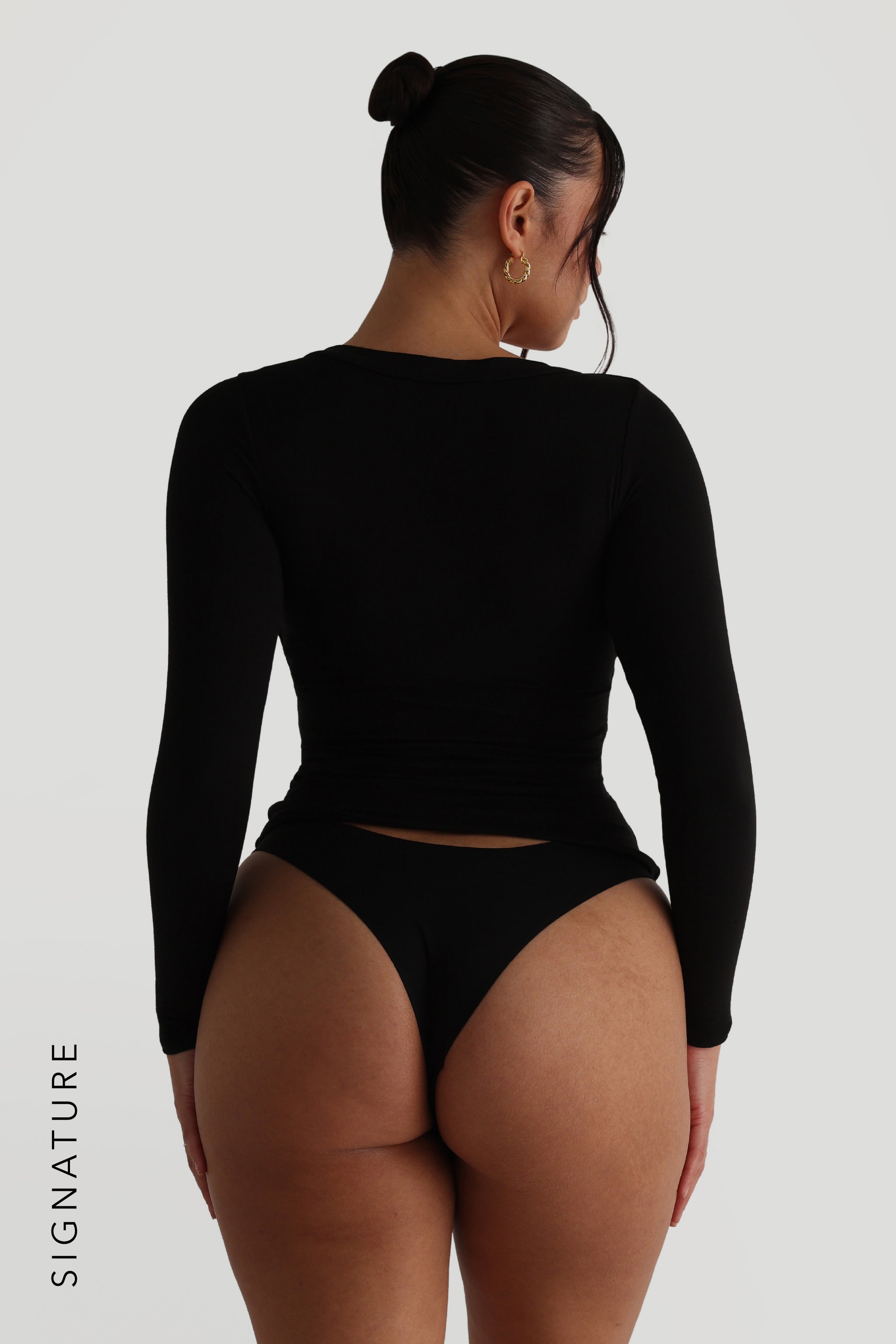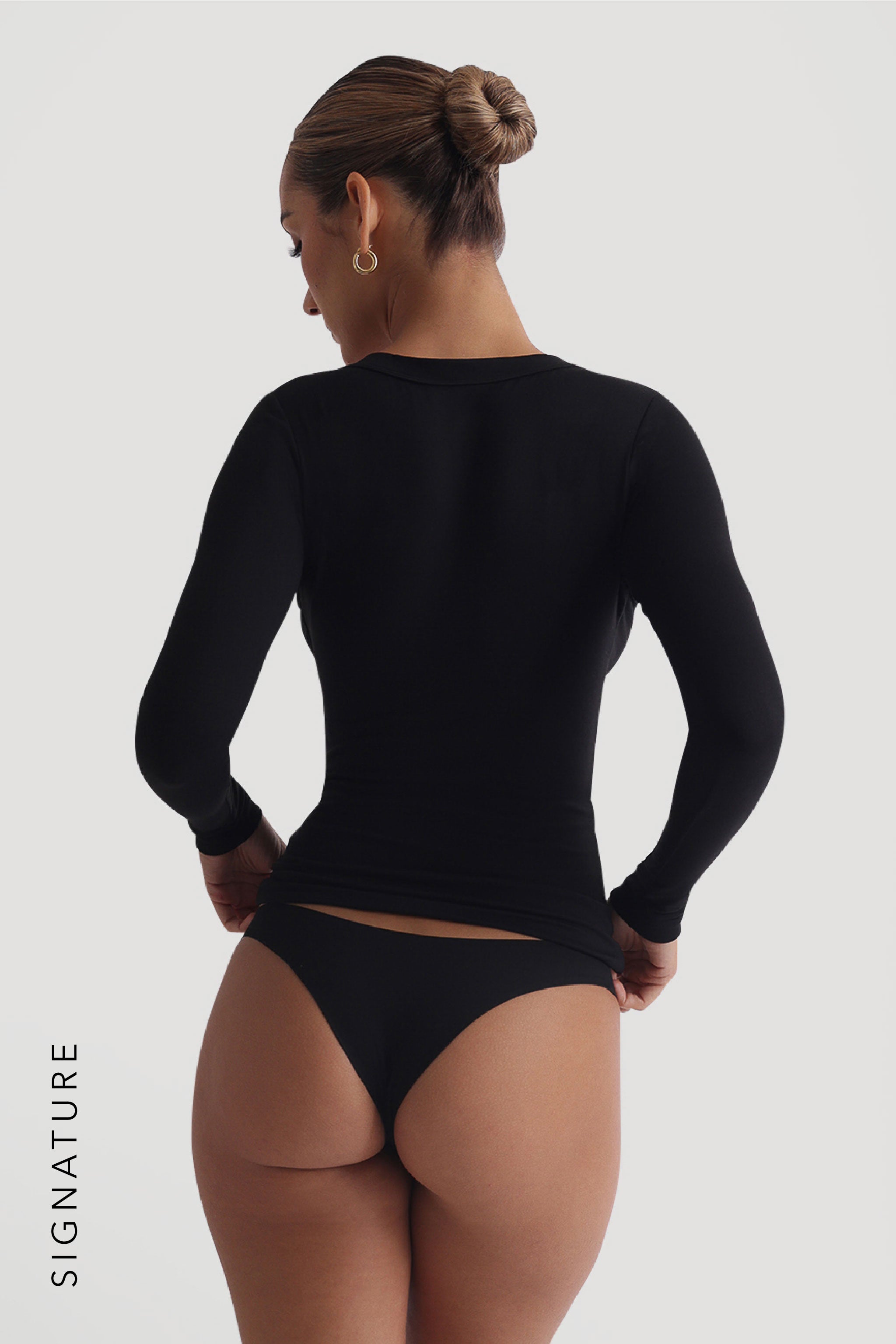 Das V -Shape Langarm-T-Shirt ist aus unserem charakteristischen Stoff gefertigt verfügt über ein 2,5 cm breites Band entlang des V-förmigen Ausschnitts, das allen Brustgrößen schmeichelt und Halt gibt.