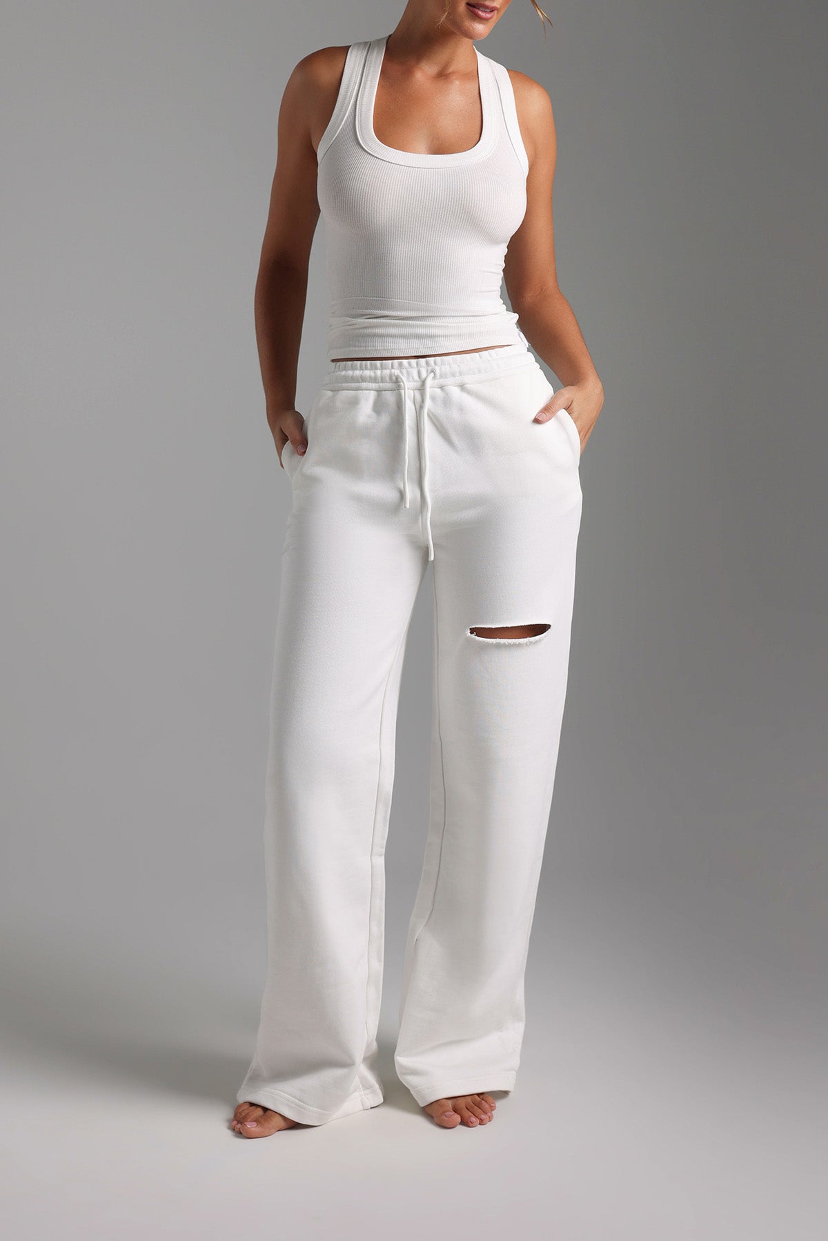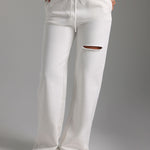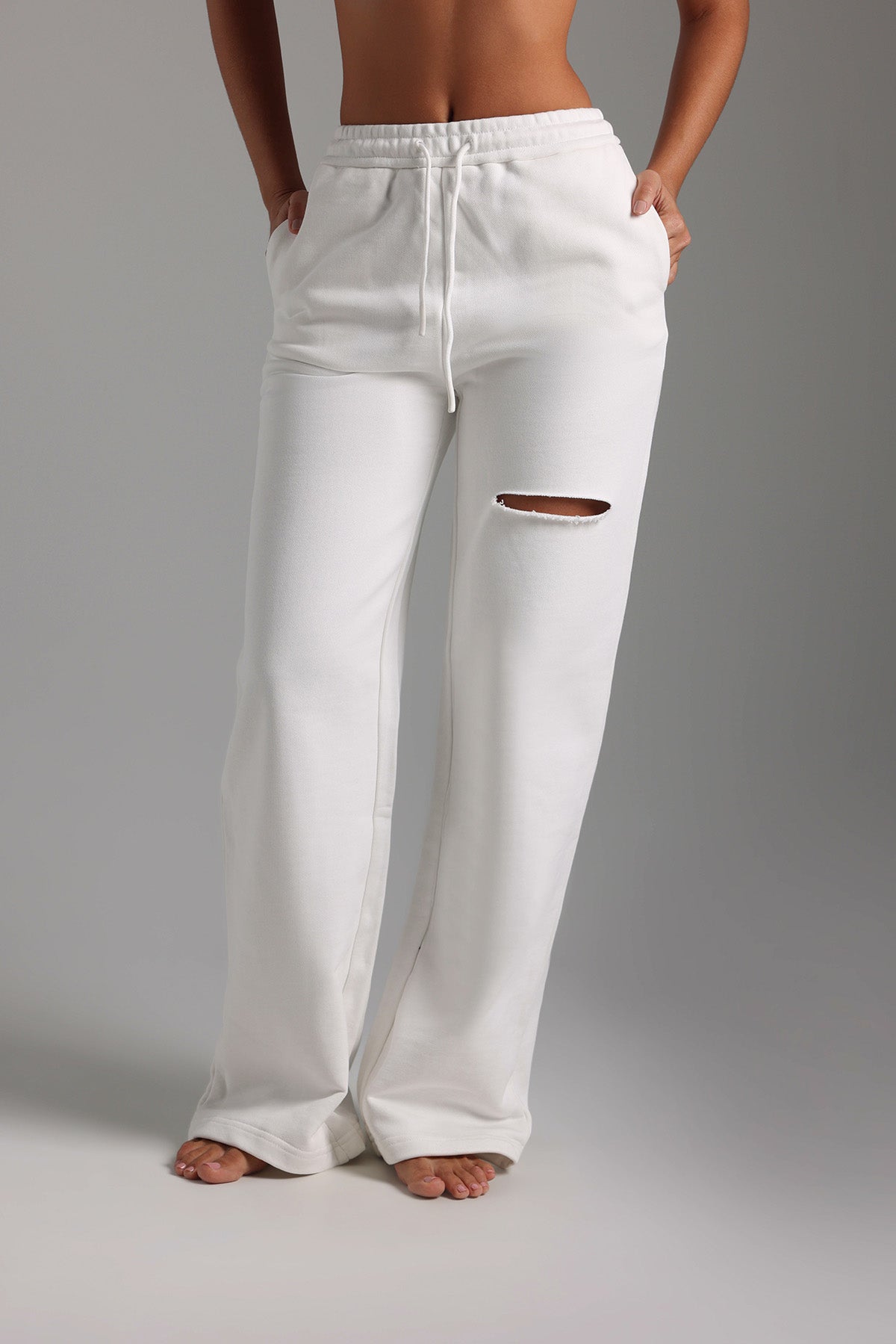 Jogginghose mit weitem Bein und Cut-Outs - Weiß