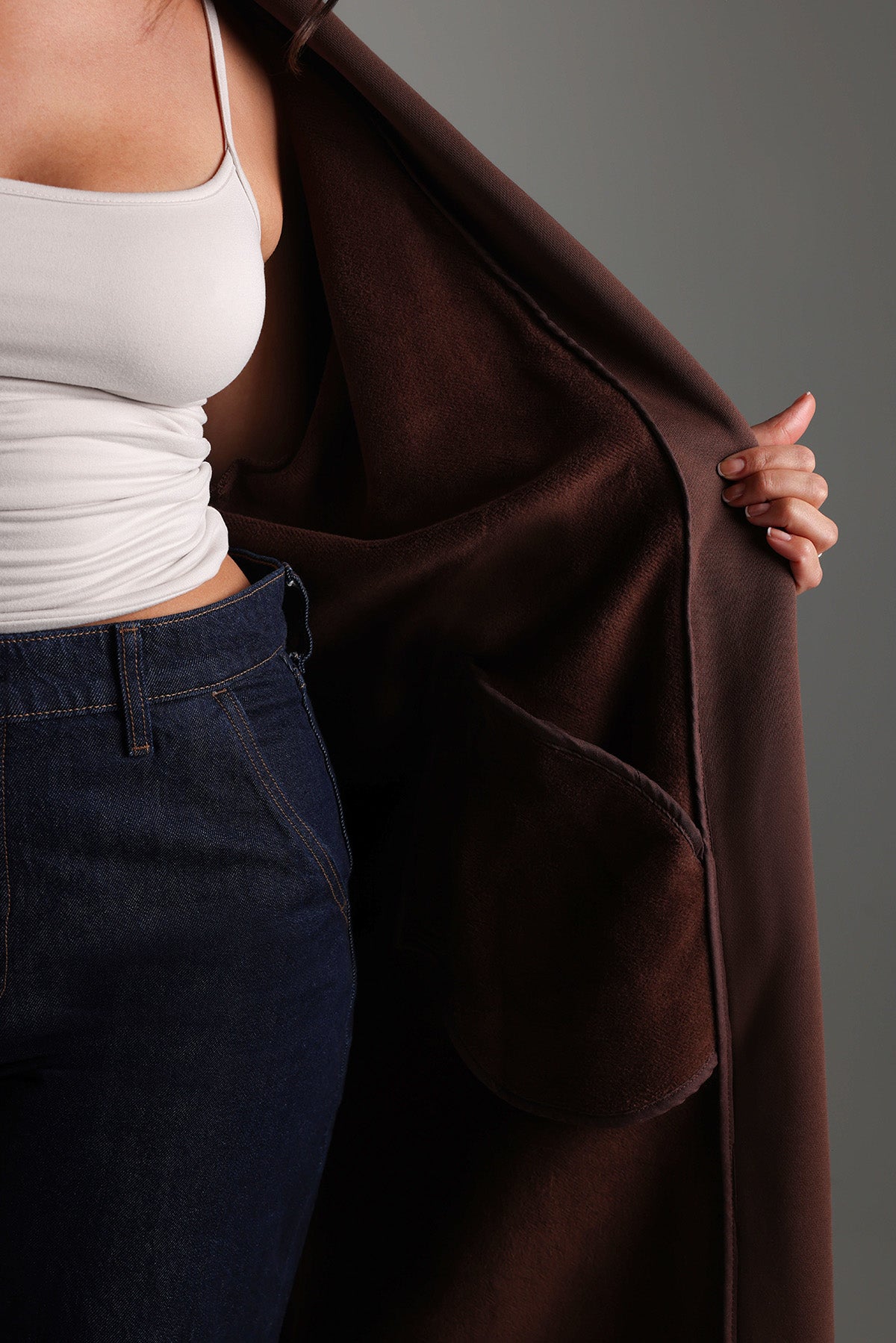 Übergroßer Sweat-Cardigan , der Sie warm hält. Aus dickem und bequemem Baumwollstoff mit weichem Innenfutter für zusätzliche Wärme und Komfort.