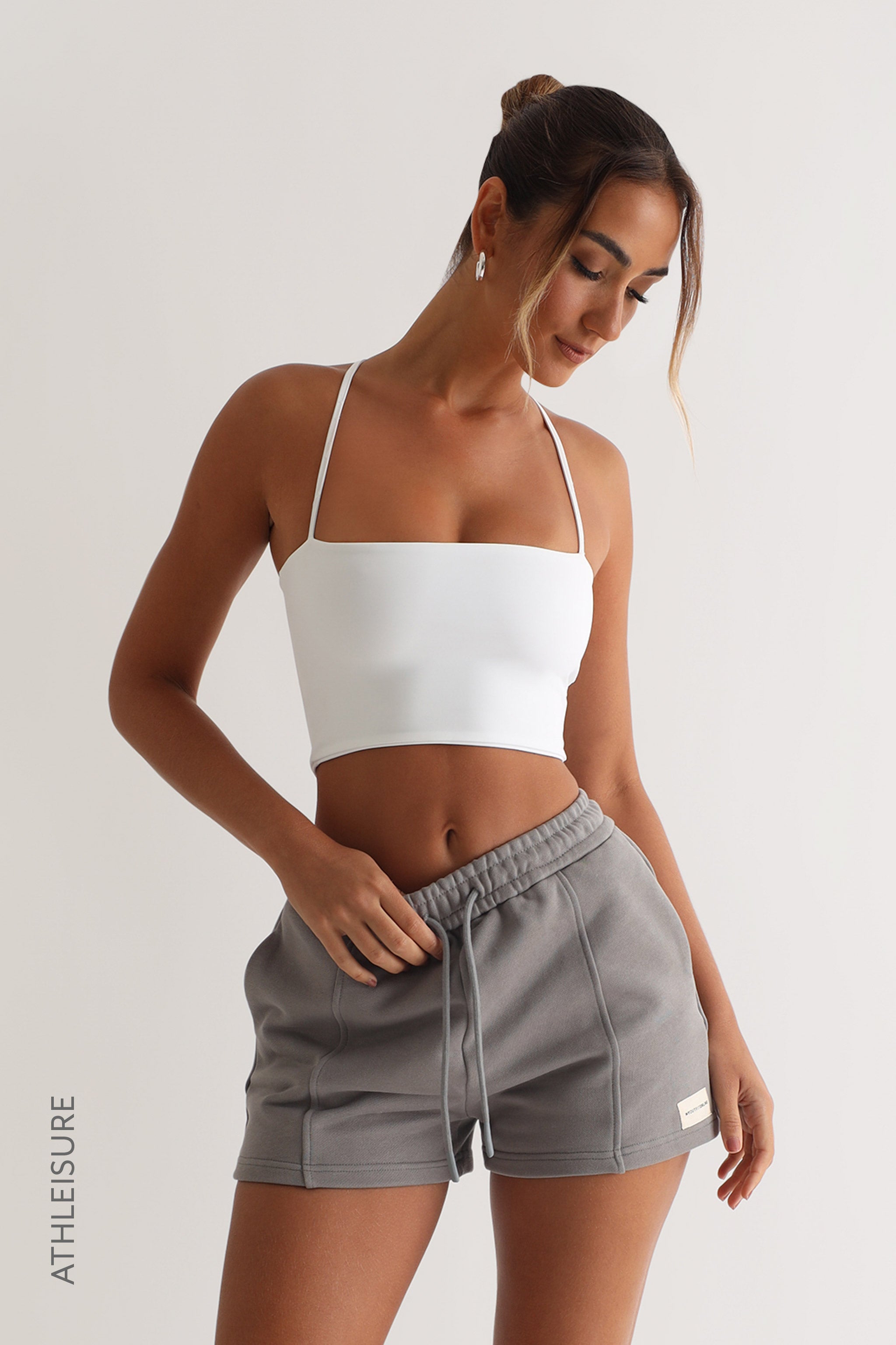 Athleisure-Crop-Top mit dünnen Trägern - Reinweiß