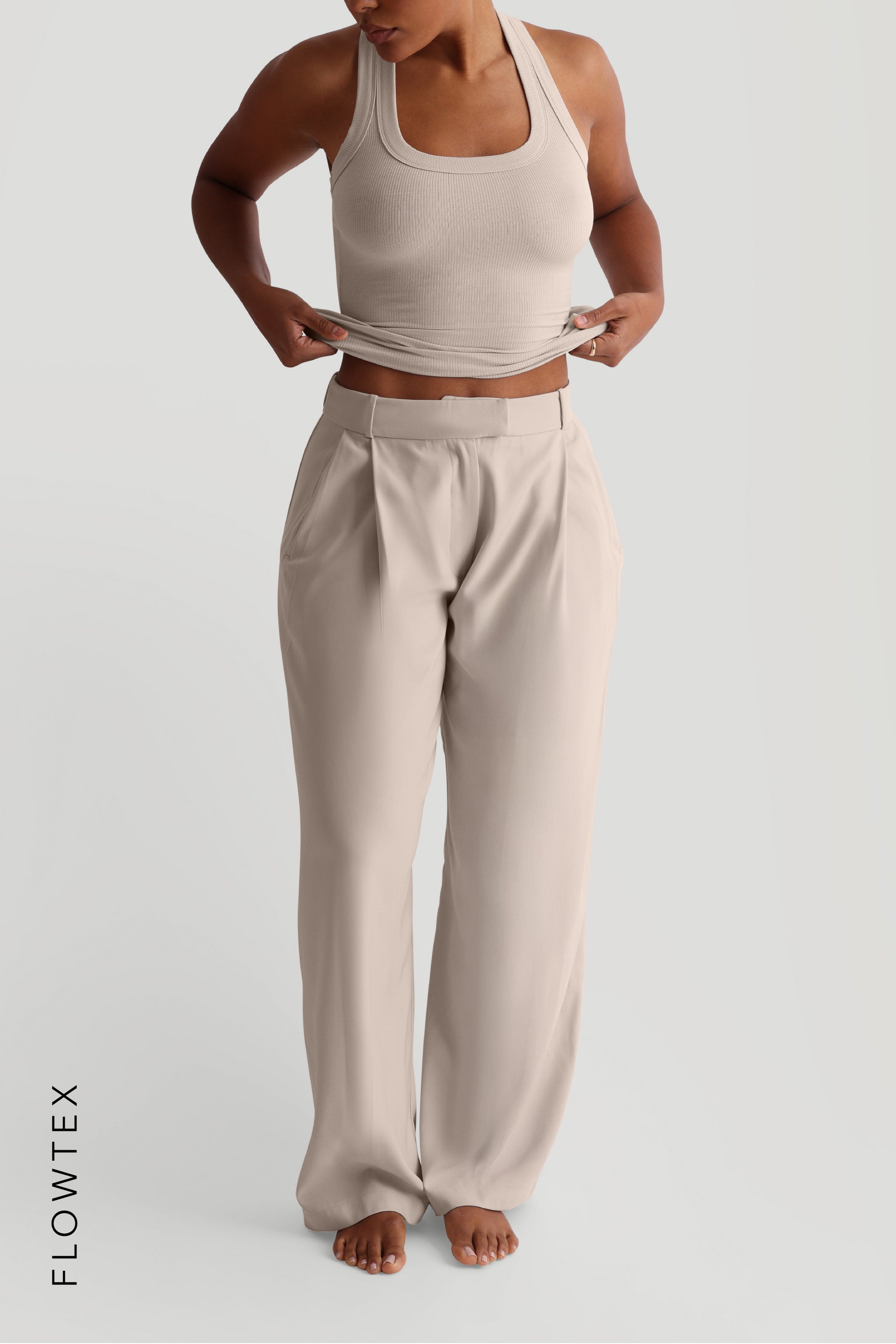 Flowtex Fabric: no stretch, no compression, slightly sheer (lighter colors)