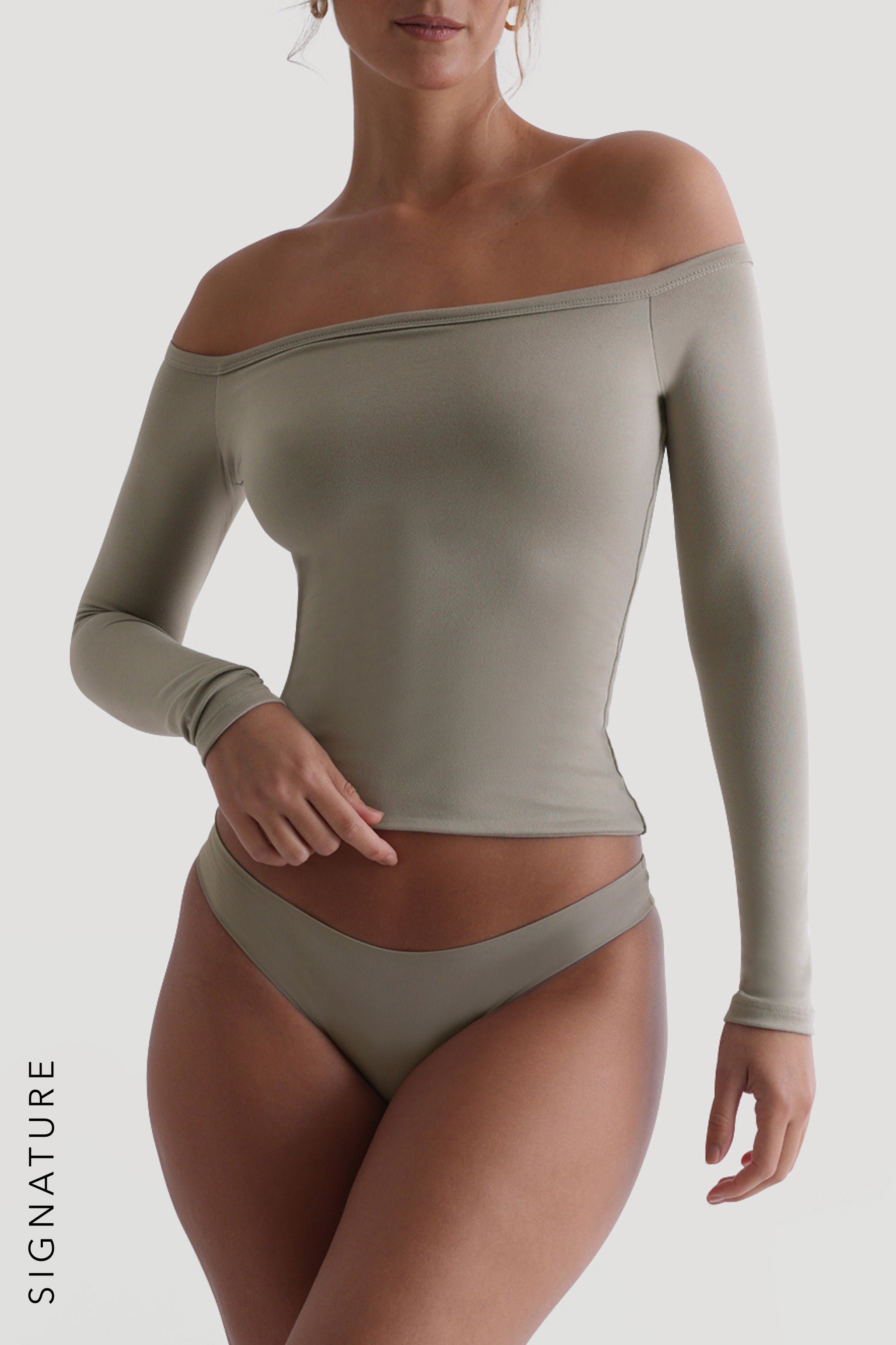 Off The Shoulder Banded Long Sleeve T-Shirt