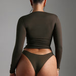 The Mist Long Sleeve T-Shirt is the go-to piece you’ll keep reaching for. Made from our Signature Fabric, it offers comfortable support for all chest sizes without the need for a bra. Designed to feel effortless and look timeless, it’s one of those shirts you’ll wonder how you ever lived without. It was made for everyday wear and seamlessly transitions to after-hours ease—no wonder our community often grabs three or four at a time.