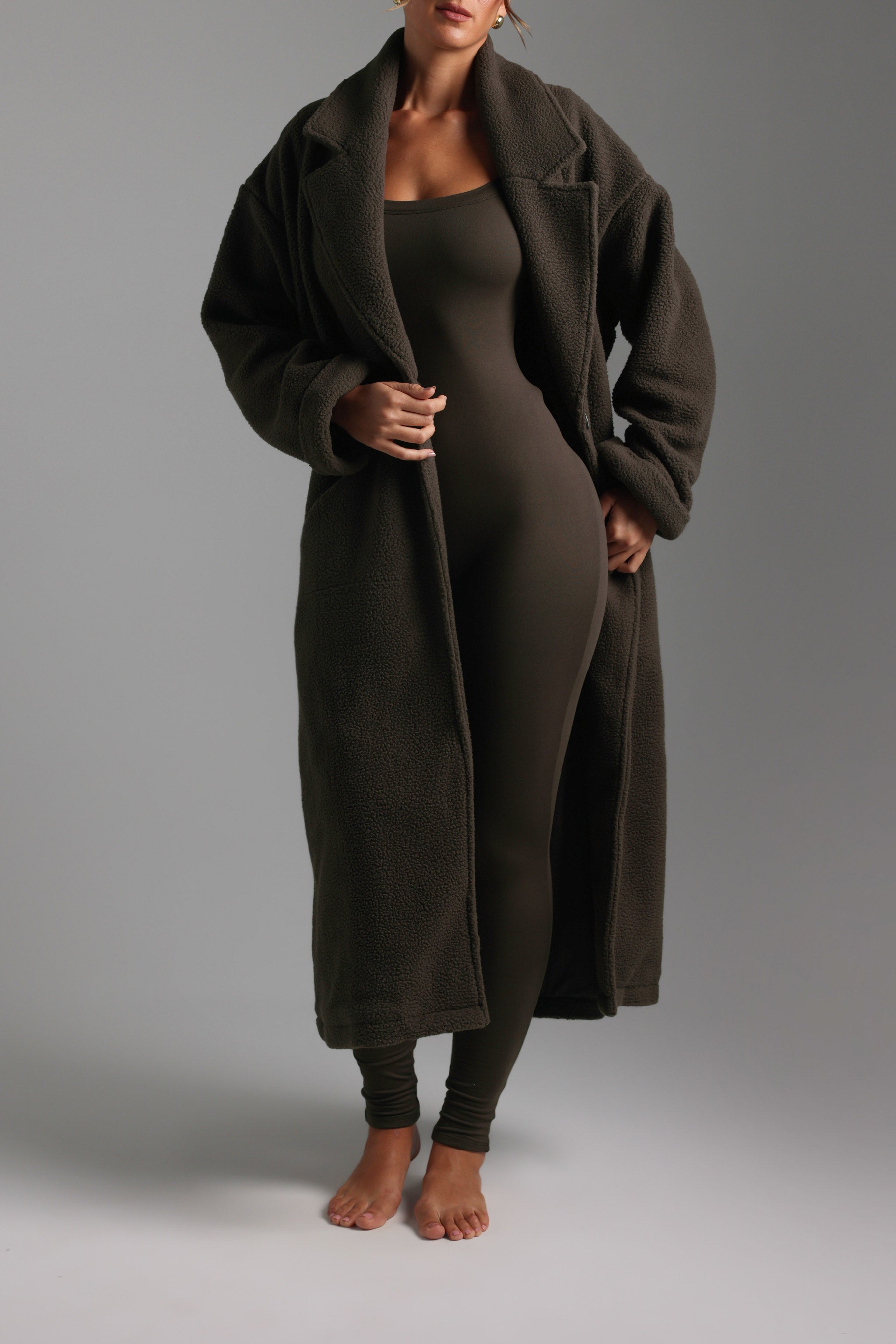 Stay warm and comfortable in the Sherpa Oversized Trench Coat. The plush Sherpa exterior wraps you in a cloud-like softness, while the cozy inner lining ensures you stay warm through every moment. Featuring timeless trench details, it’s perfect for colder days when you want something that’s both warm and functional.