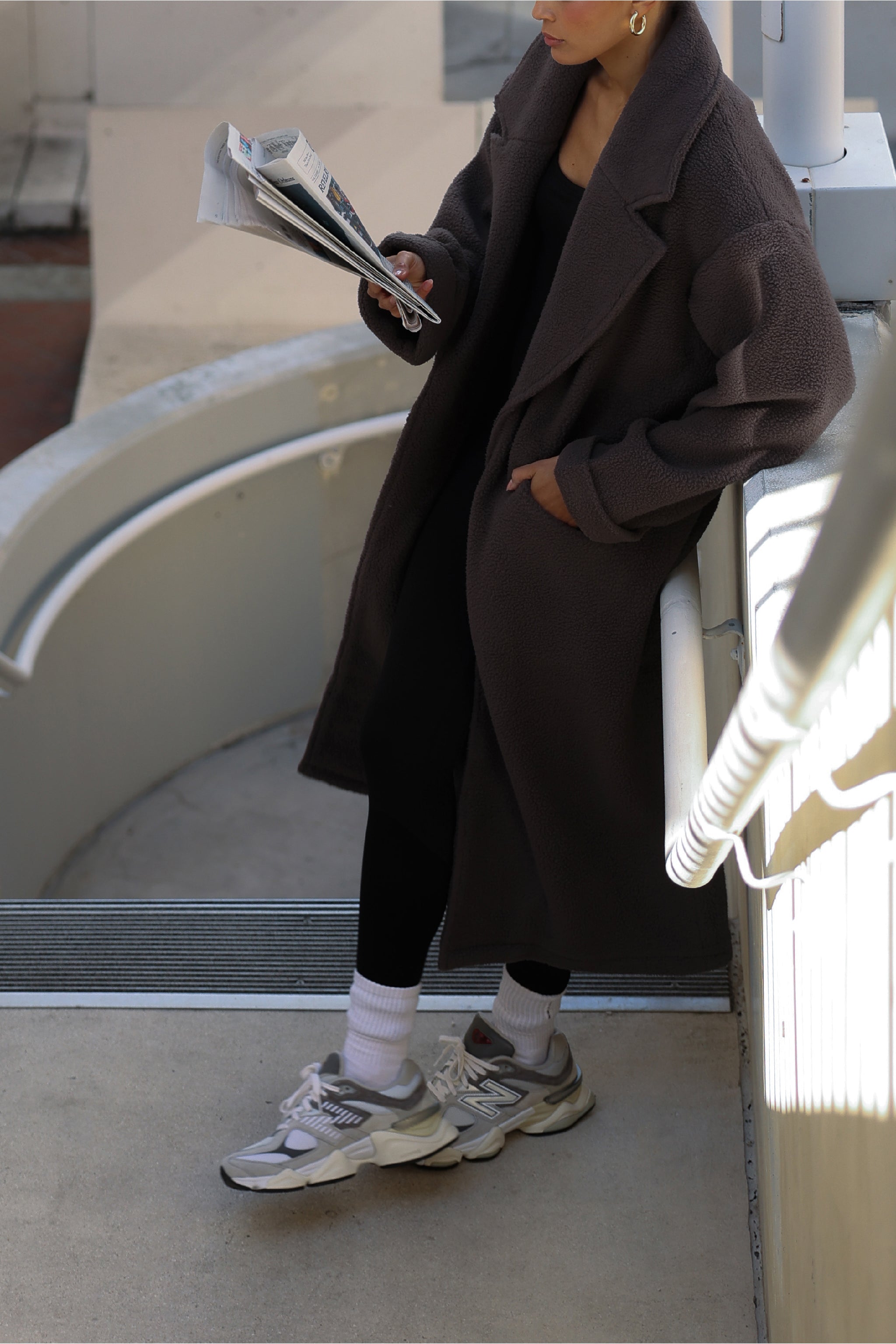Sherpa Oversized Trench Coat - Charcoal