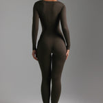 U-Shape Long Sleeve Jumpsuit - Charcoal