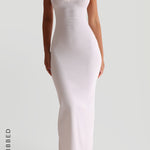 Form-Ribbed Plunge Split-Back Maxi Dress - White