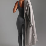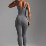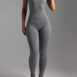 Banded Scoop Neck Jumpsuit - Stone Gray