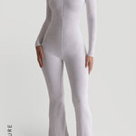 The New Standard Flared Jumpsuit was designed with a built-in zipper that can be adjusted to your neckline preference as well as a flared bottom. It comes in two lengths to fit all heights.